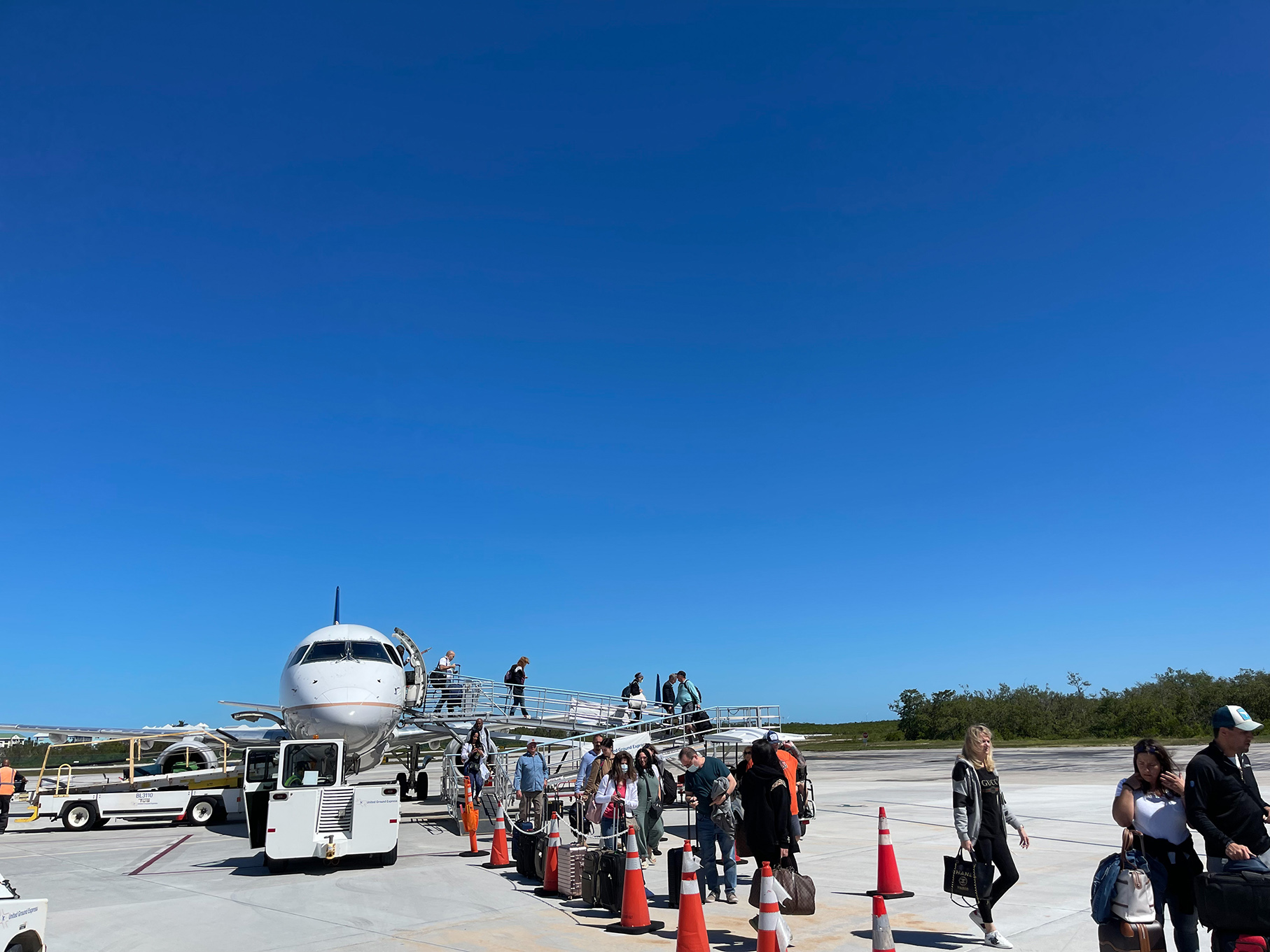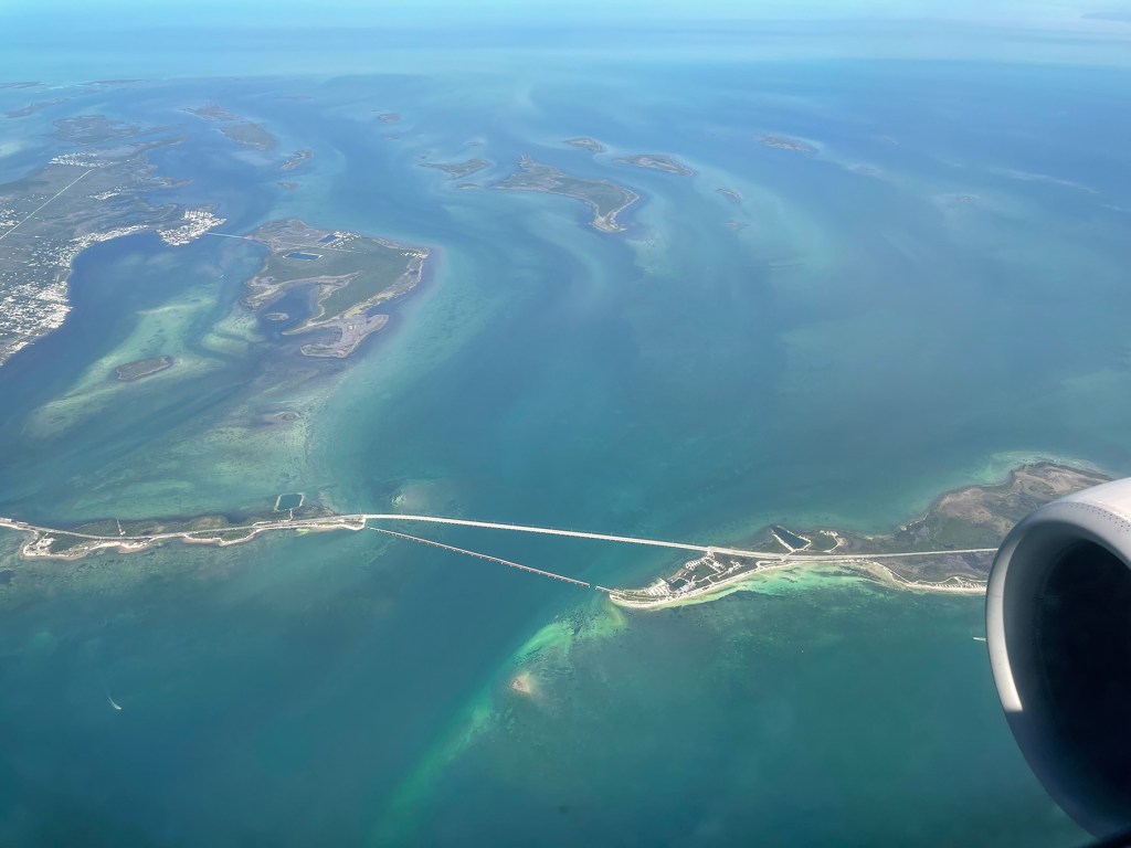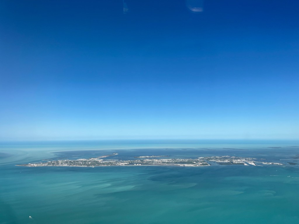 Our flight was a bit bumpy throughout the duration but we managed to make great time. It was around 12:30pm and I could start to see all the blue and green hues below – which is always a sign that we are getting closer. The captain announced that we were approaching Key West and would be a few minutes early.