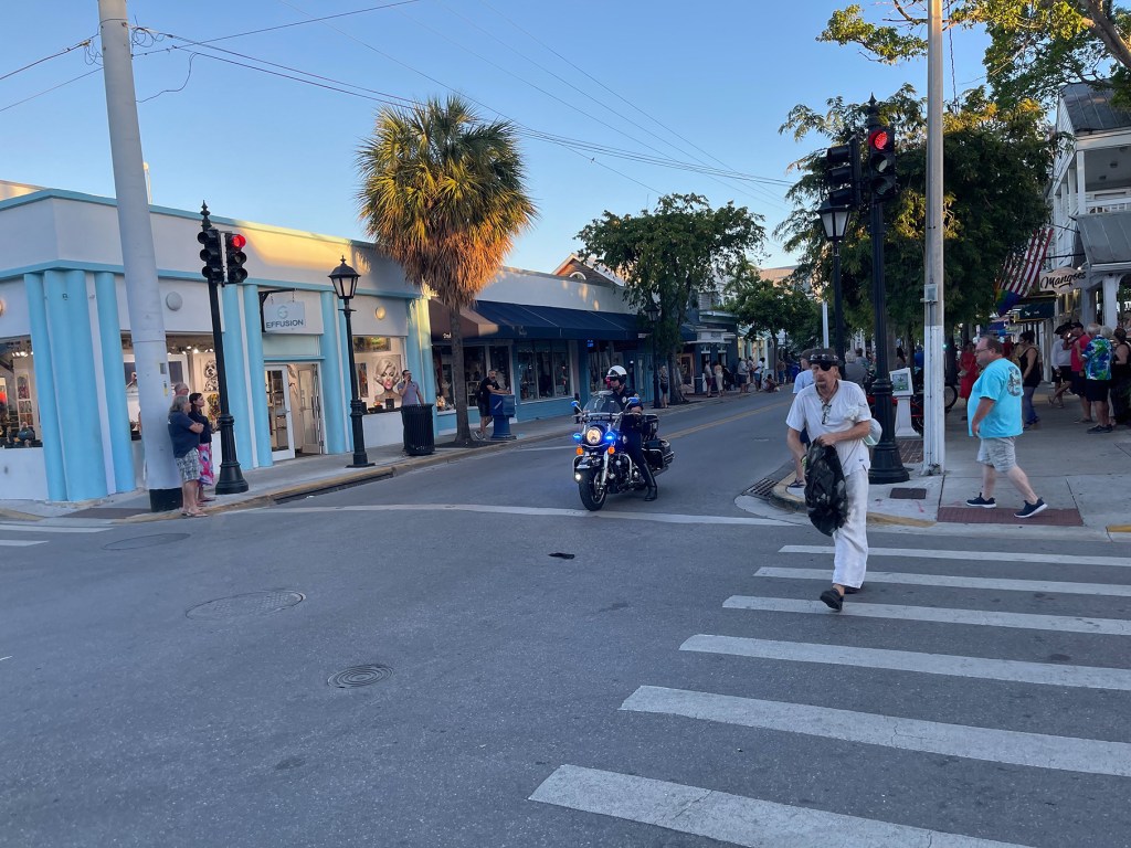 We walked down Angela St. to Duval and decided on Kaya Island Eats since it was so close by and the food has always been good the couple of times we have tried it. Once we crossed Duval St., my husband noticed that the road was blocked off and there were a couple of police officers stationed on their motorcycles right in the middle of Duval. Then as we looked around, we saw everyone was waiting for something.