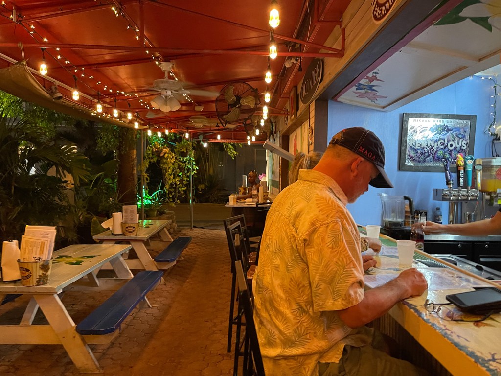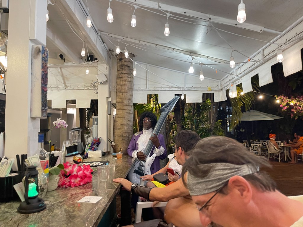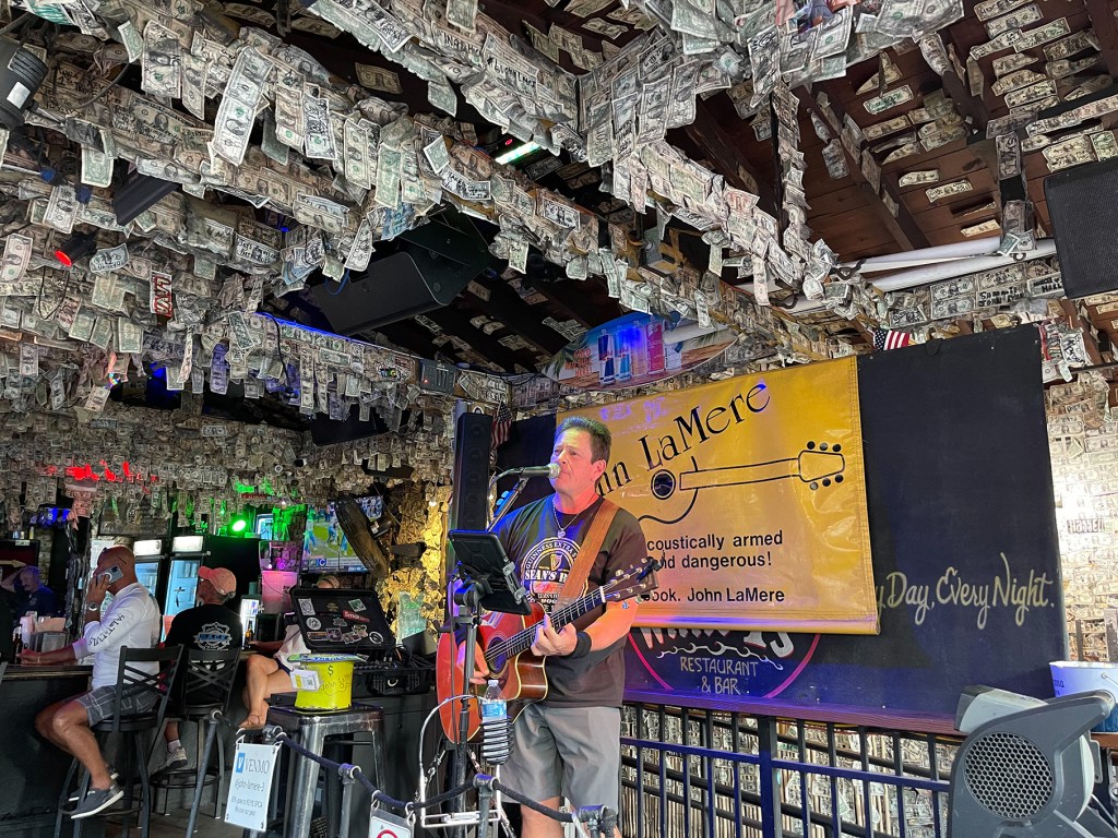 We walked down to Captain Tony’s to see if Gabriel Wright was playing, and sure enough he was. So we grabbed a couple of open bar seats and ordered a couple of drinks. I think I just had a White Claw. I couldn’t really do beer at that point. I don’t think I really drank much beer during the trip, and normally I will have Corona Light, but maybe since it wasn’t as hot? I don’t know maybe I just wasn’t in the mood.