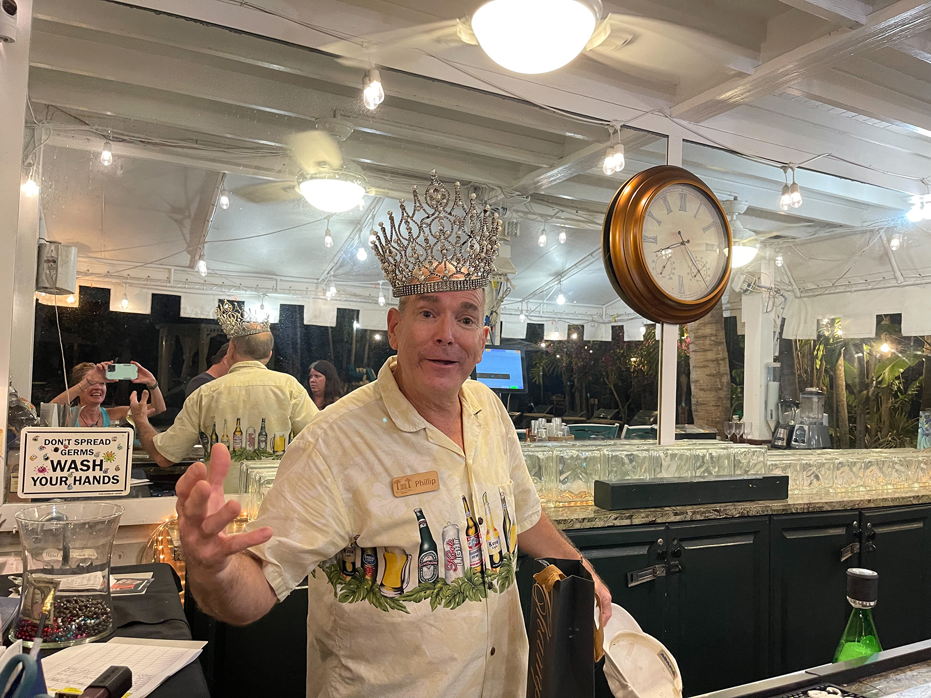 We watched a few more of the bikers go by before going back to the Gardens. Phil still had the bar open so we had a nightcap and listened to more of his stories. We also realized someone left behind the Fantasy Fest Queen crown.