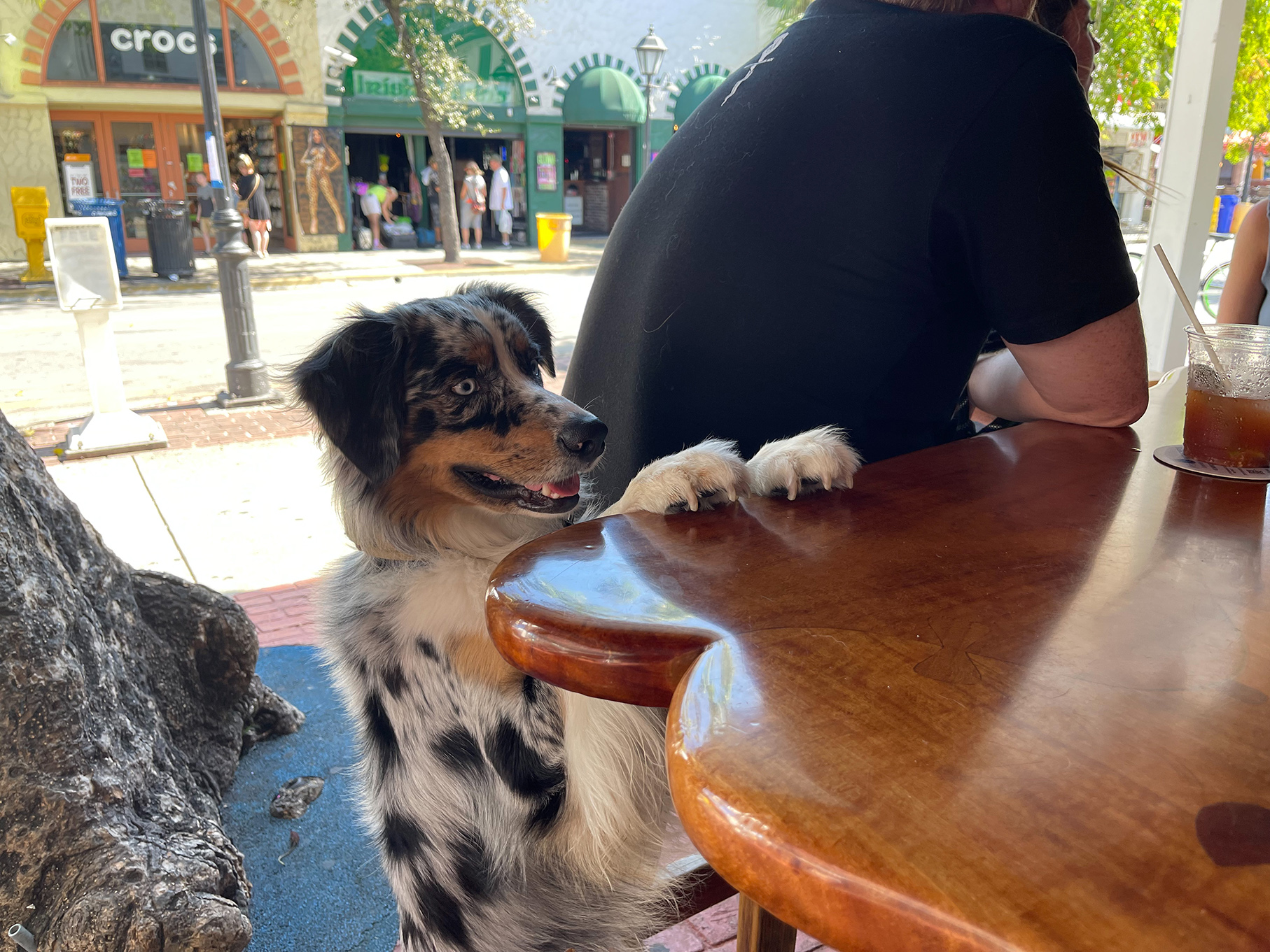We were walking by the Tree Bar next to Rick’s when I noticed Terry was bartending. So we stopped in and said hello. We each ordered their signature fresh squeezed orange juice with some Tito’s. The orange juice tasted nice and refreshing. It also felt like a little vitamin c boost. We talked to Terry for a few and also some of the other patrons that were sitting there, including this beautiful dog.