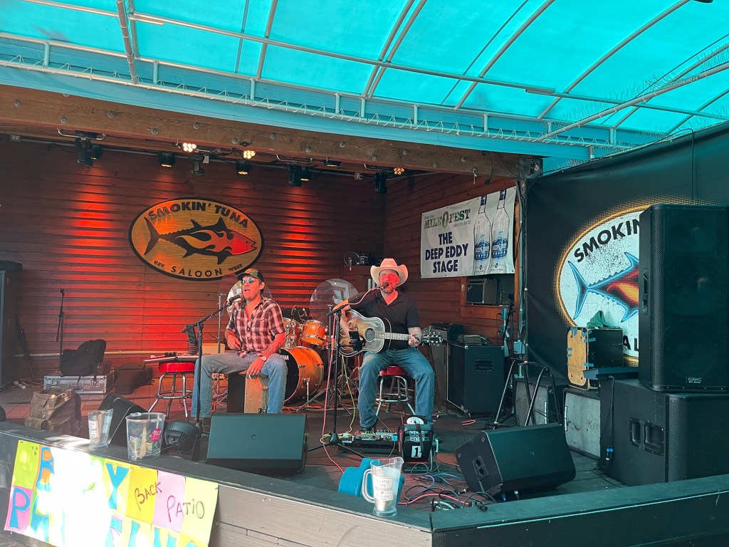 Again it was a short ride back and we walked down to the Tuna. It was pretty crowded when we walked in, but there was one table that was open right in front of the stage. It was if it was left that way for a reason. While Brent went on stage to set up with Carl and the band, we ordered a couple of drinks. Erin and Ed were also working behind the bar so I made sure I said hello to them.