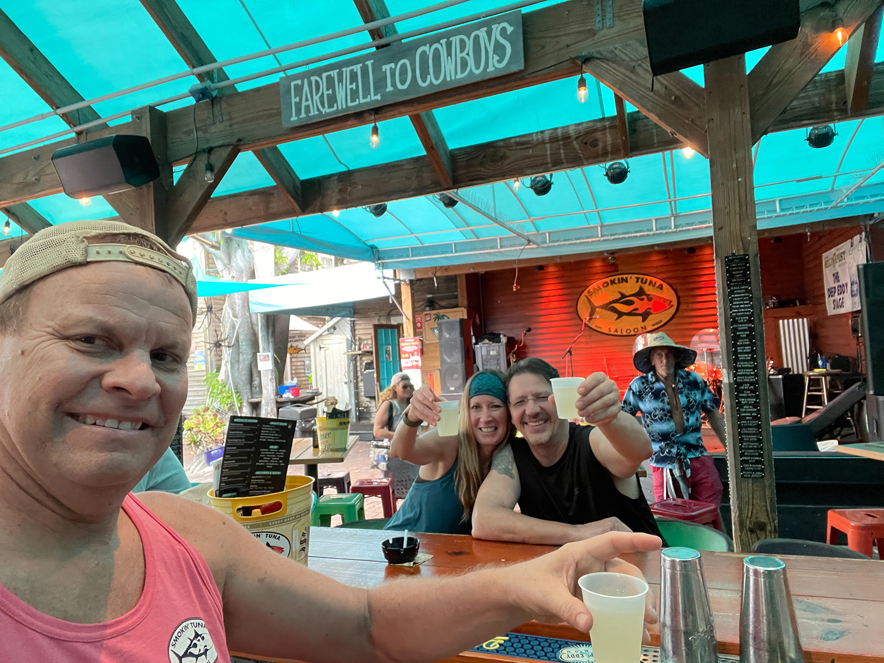 We made it to the Tuna and it was packed. The only table available was behind the bar, but it was fine to have something to eat. As predicted, we had the caesar salad with the blackened mahi mahi. We all ordered some wings as well. The food isn’t high end, but if you want something reasonable and very good, the Smokin’ Tuna does have decent food. Honestly I can’t remember the last place I did have a bad meal in Key West?