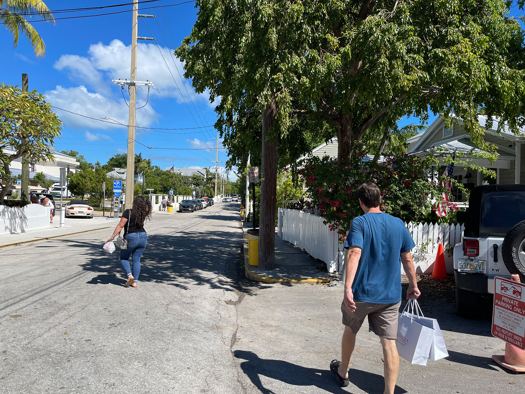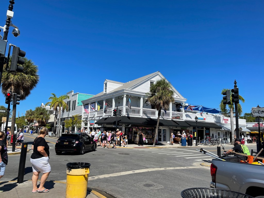 We walked back to the Gardens to relax for a little while. I was finally feeling like myself so motivated myself to get us both going. We walked back down Duval towards Hogs Breath. The streets were filled this time with more people. Some people were also dressed up or not so dressed up for Fantasy Fest, but there was a mix of people.