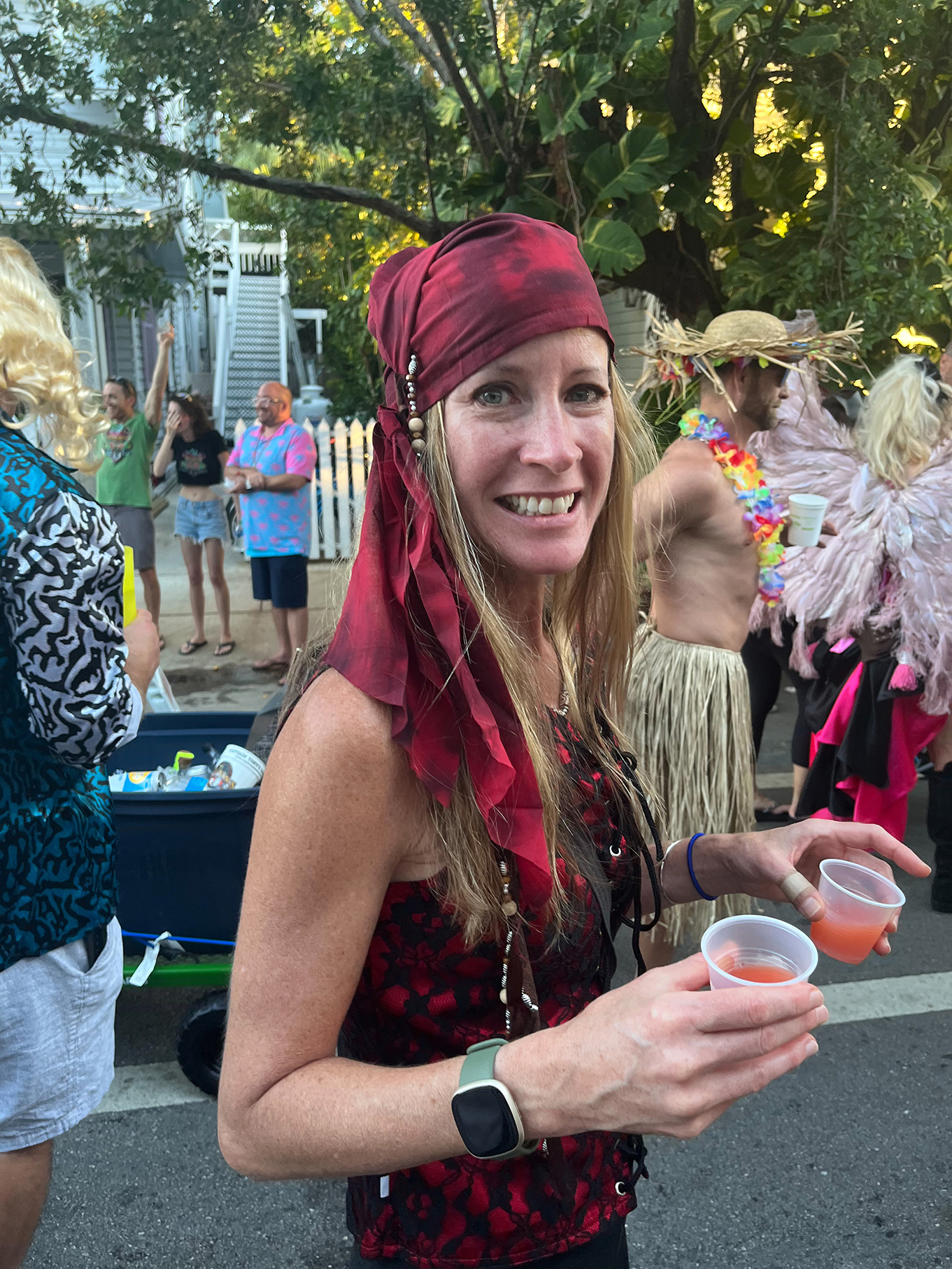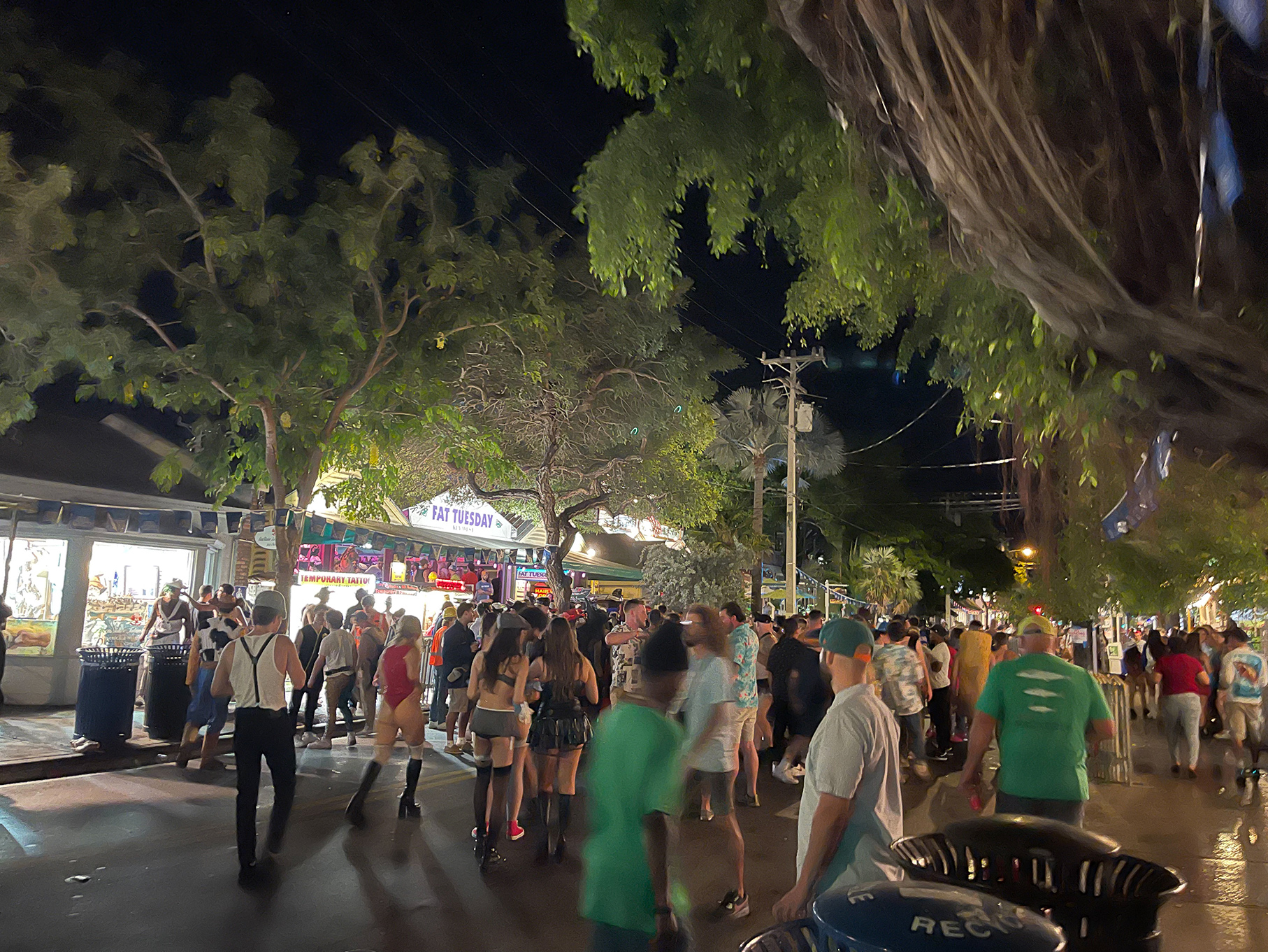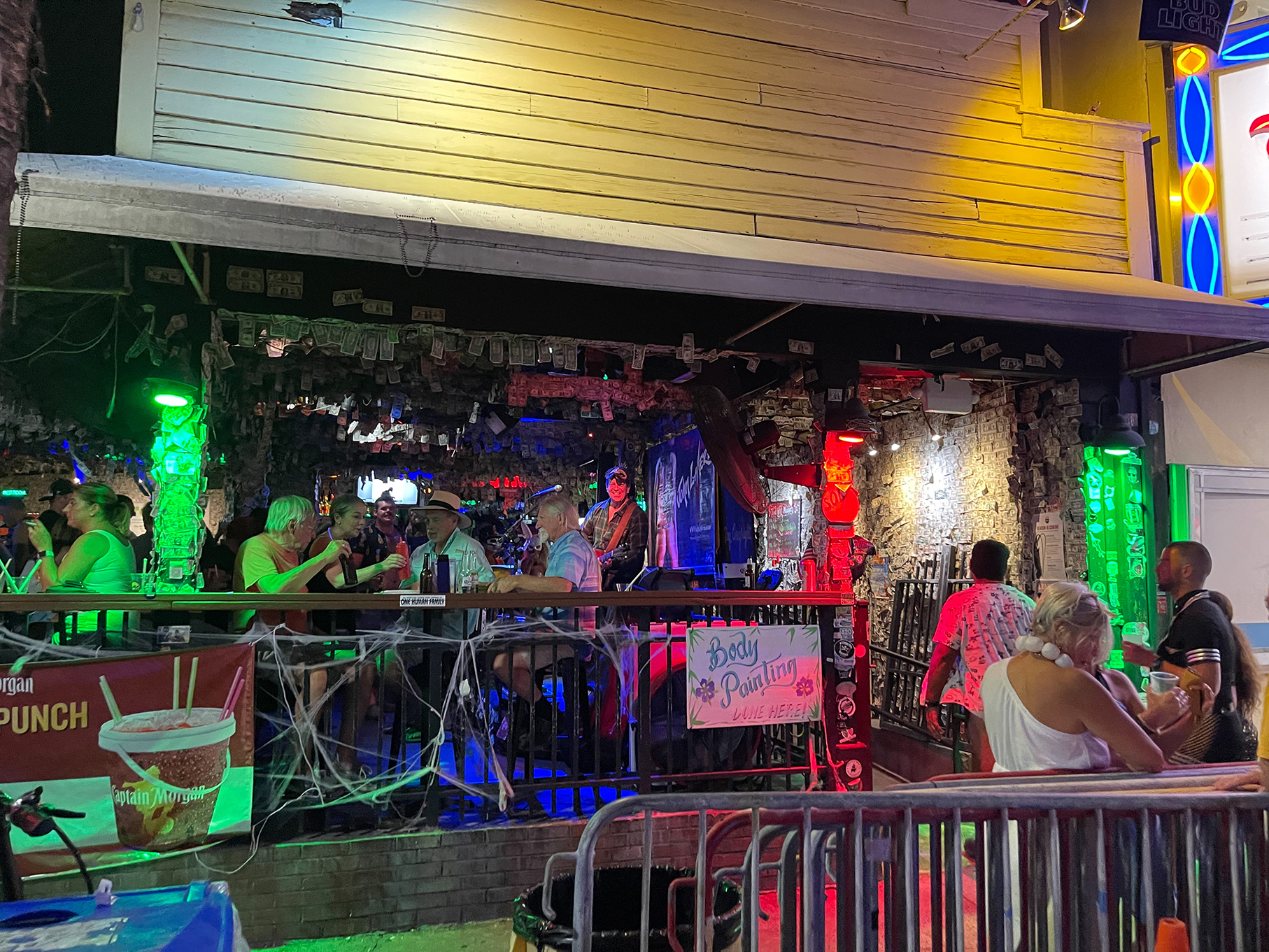 We regrouped and we made our way back down Duval to the Tuna. John LaMere was playing as we walked by. The streets were filled with Fantasy Fest people once again.