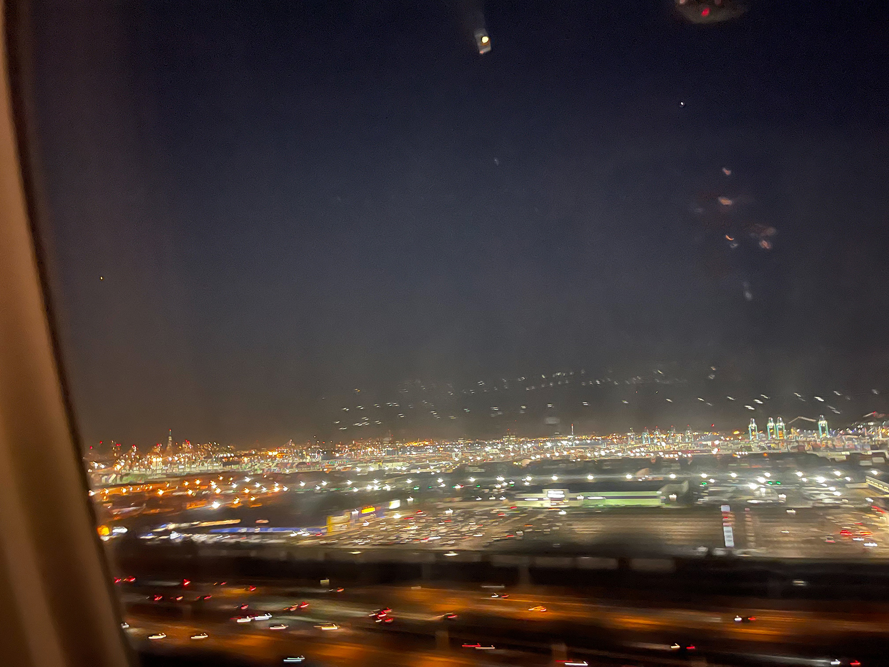 The flight seemed shorter then normal. Just after 2 hours, the captain came on the intercom telling us we were making our decent into the Newark Liberty International Airport. We wound landing just after 7pm – about 30 minutes early. We did however, have to wait for a few planes to clear the area before we could get to our gate. All and all though, it was a very uneventful flight which is always a good thing.