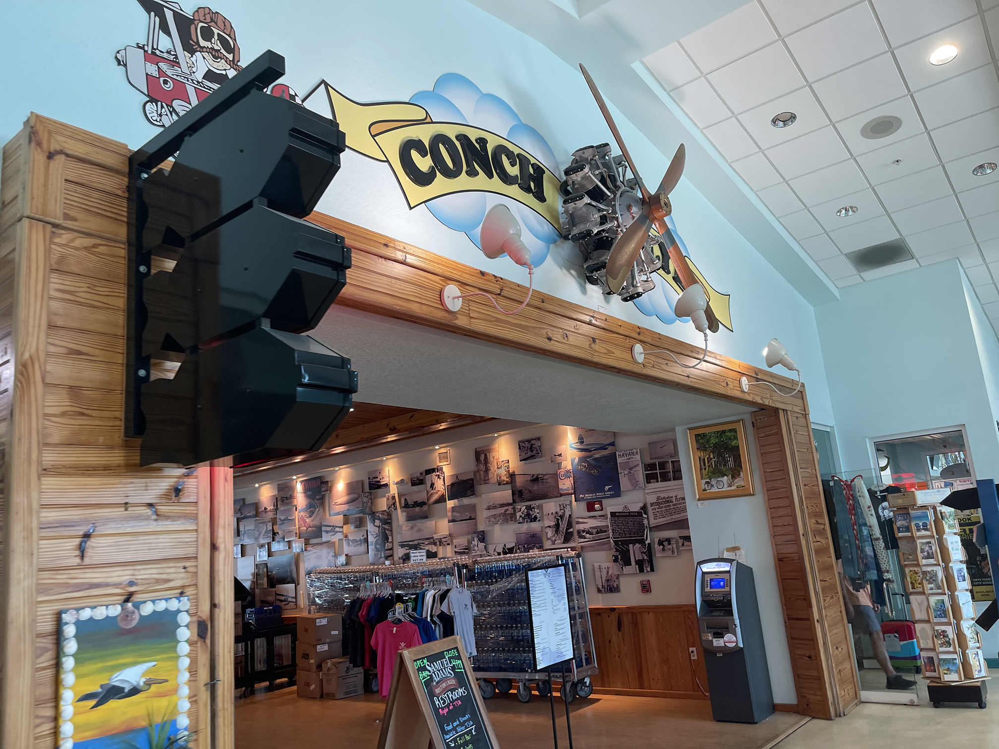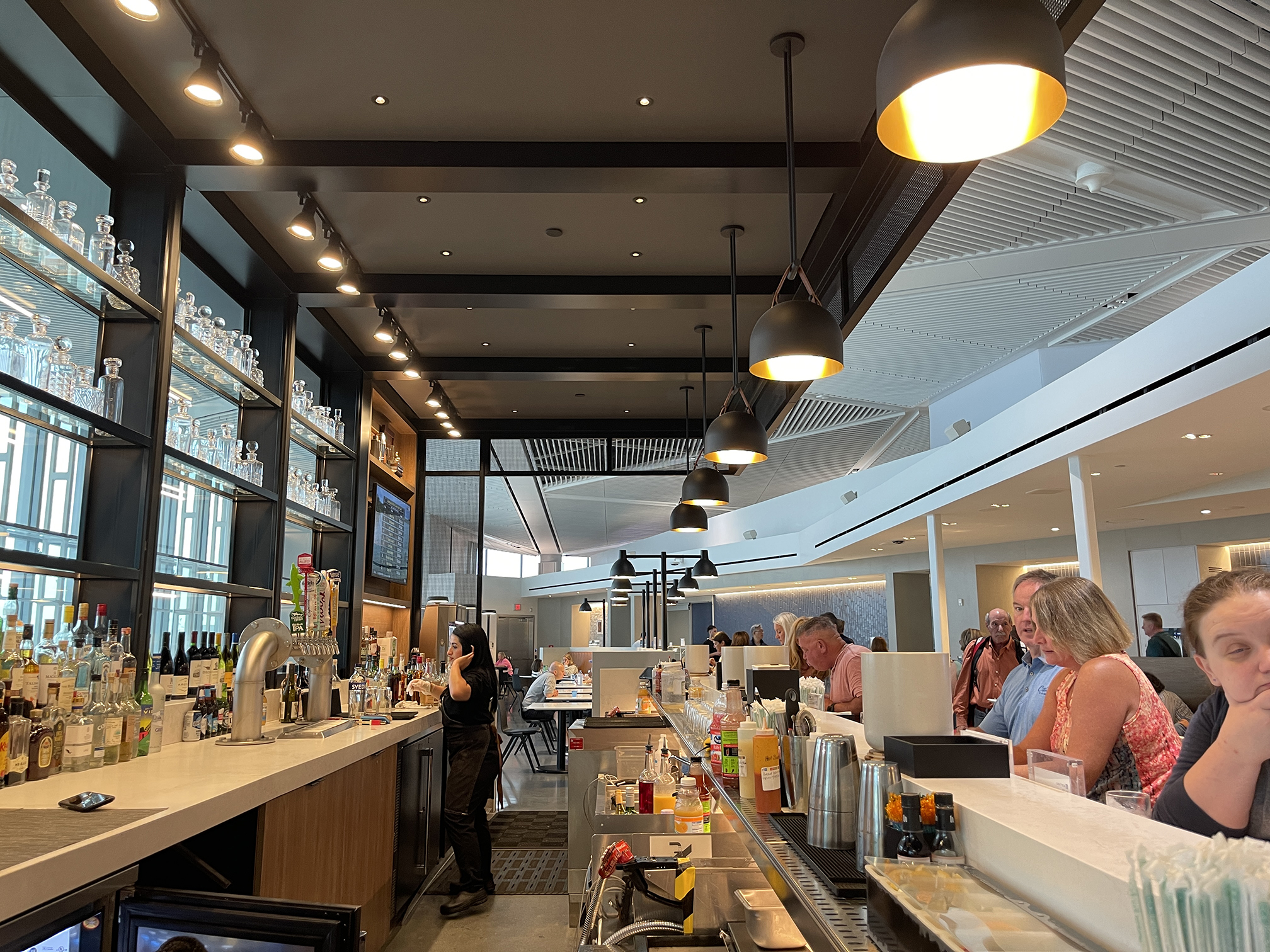 Within minutes the Uber arrived to take us to the airport. When we arrived, we notice the TSA lines were nearly none existent. My husband suggested having a drink at the Conch Flyer instead of being crammed in between all the people that you know are waiting down the escalator at the gate area. I thought that was a great idea. So we grabbed a couple of seats at the bar and ordered something to drink.
