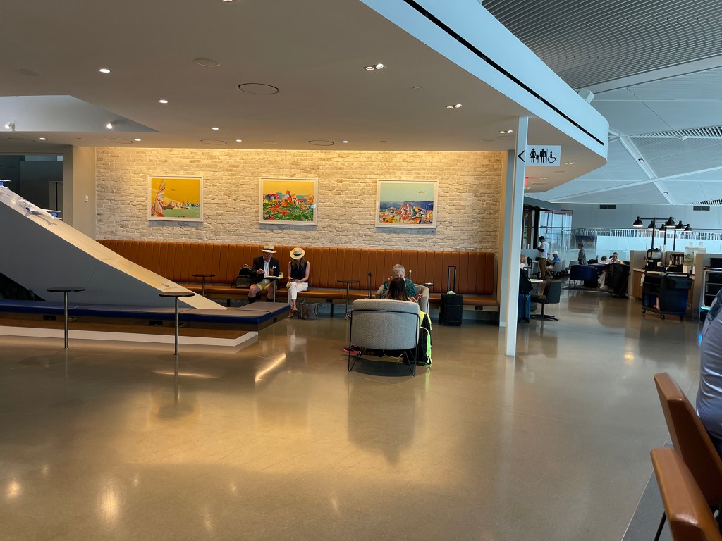 After little under an hour, the our car service dropped us off at the newly constructed Terminal A in Newark Airport. Terminal A is quite nice. Sometimes we have to leave out of Terminal C, but A is much preferred due to the ease of TSA, less traffic of people and overall it is brand spankin’ new. There was barely a line for Clear so we eased right through. We walked up the escalator to the United Club lounge with our carry-on luggage in tow, to grab something to eat while we waited for our flight. There were two seats at the end of the bar, so we sat down and ordered a couple of “you’re on vacation” drinks. Soon after we were served our drinks, a message appeared on my FitBit. It read the dreaded “your flight has been delayed”. I quickly grabbed my iPhone and saw that our flight was indeed delayed, but only by half an hour.