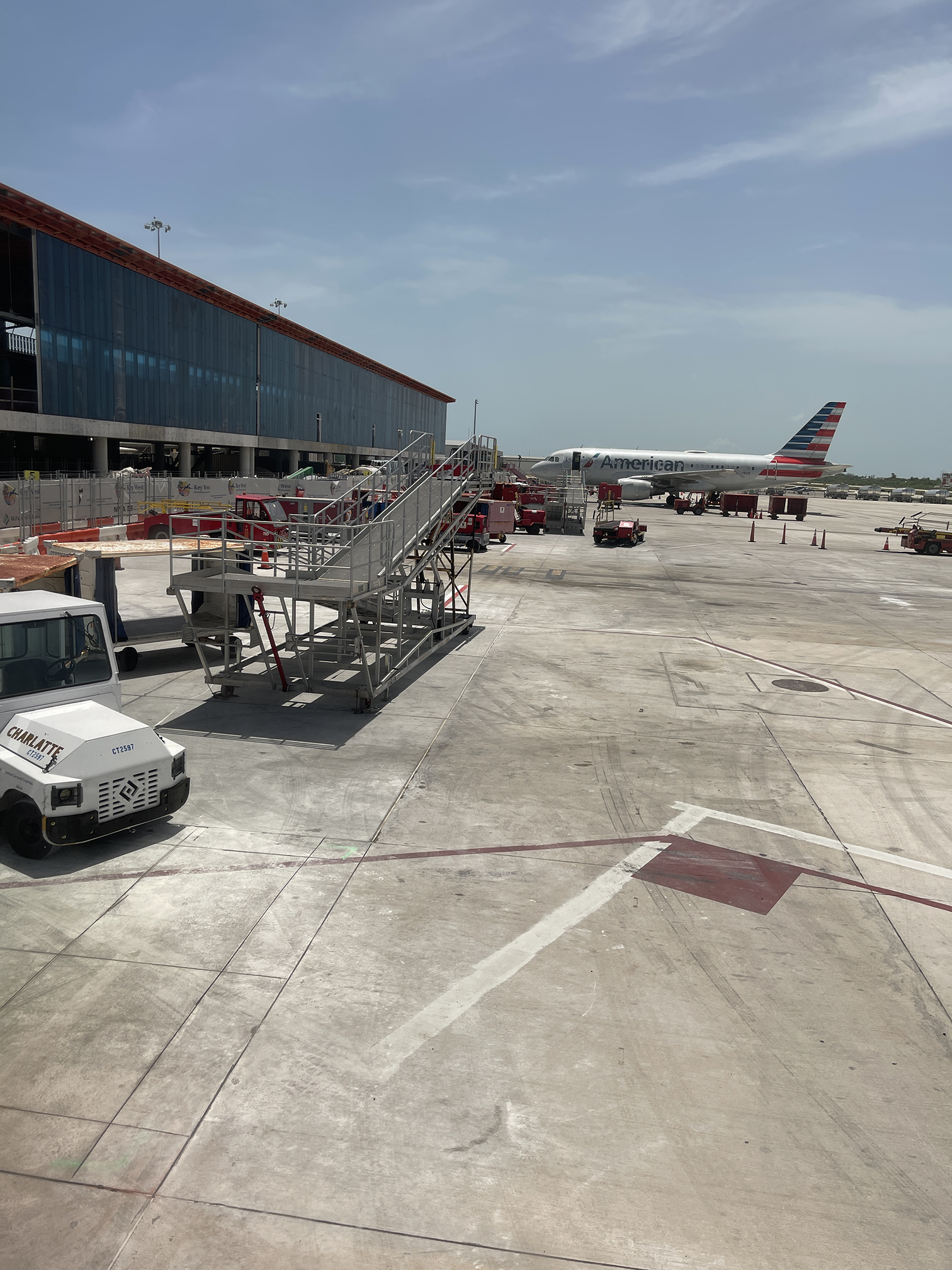 As soon as we deplaned, you could feel the sun beating down along with the humidity. As we were escorted to the airport, I noticed that there was more progress on the construction of the new airport. It still looks like it will be at least another year or two.