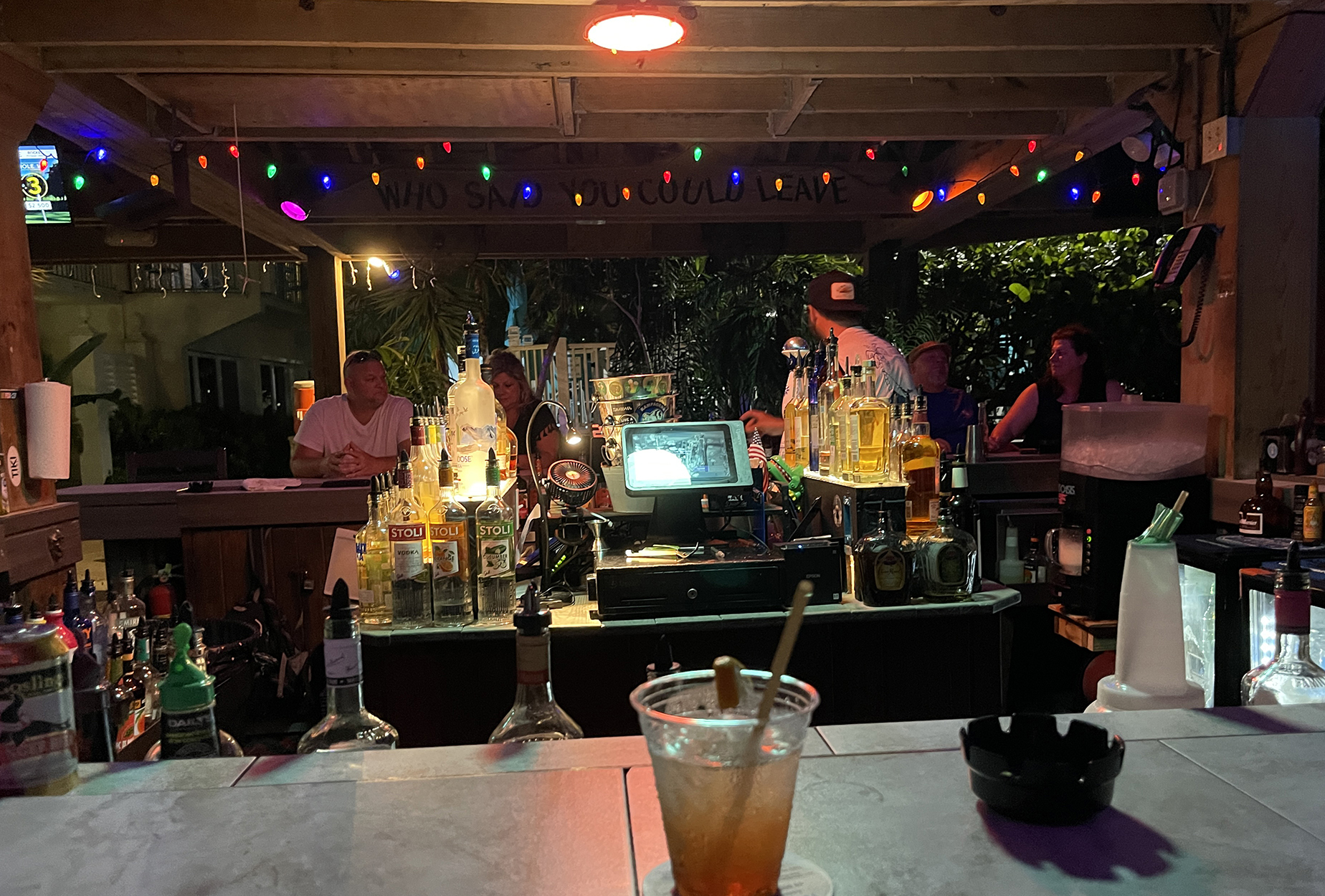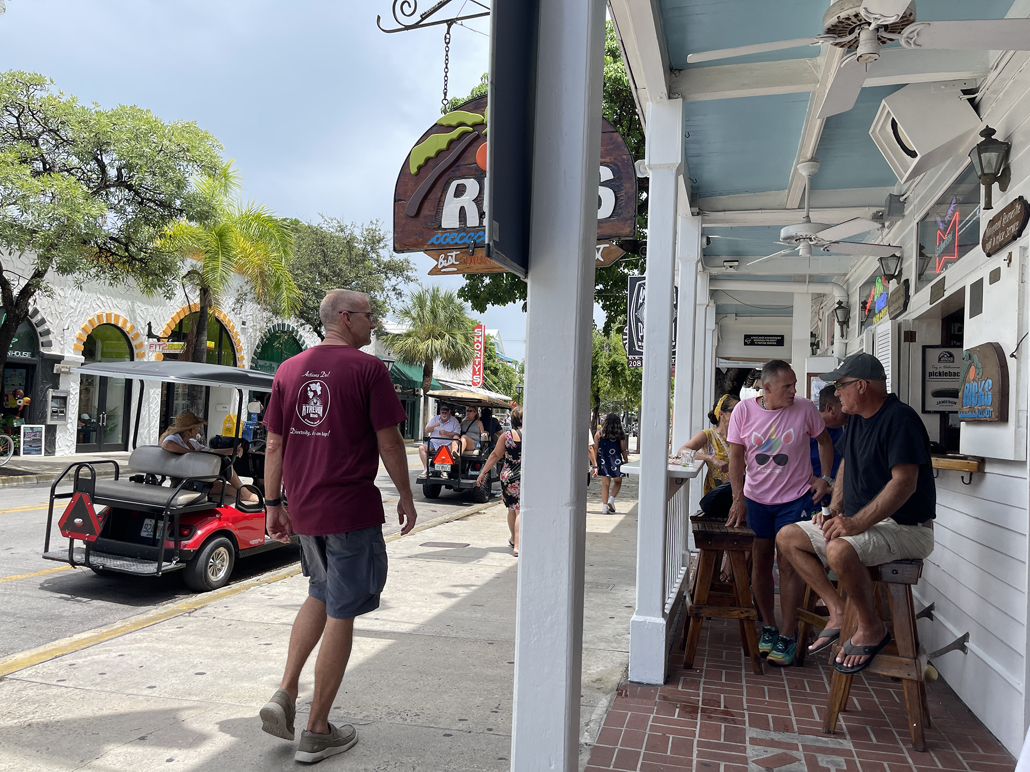 Once we paid the tab, we walked back onto Duval and I thought about stopping at the Tree Bar, but Terri wasn’t working. Then we turned around and sat down at one of the tables in front of Rick’s and my husband and I ordered a couple of beers.