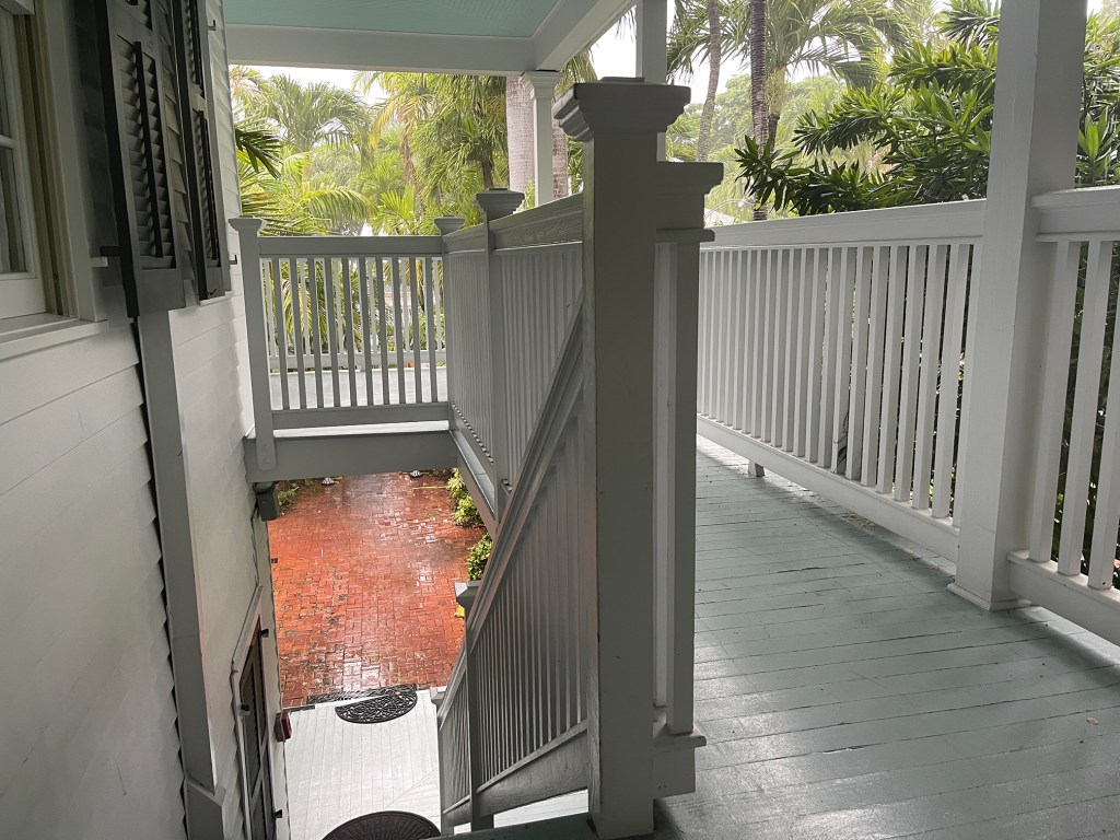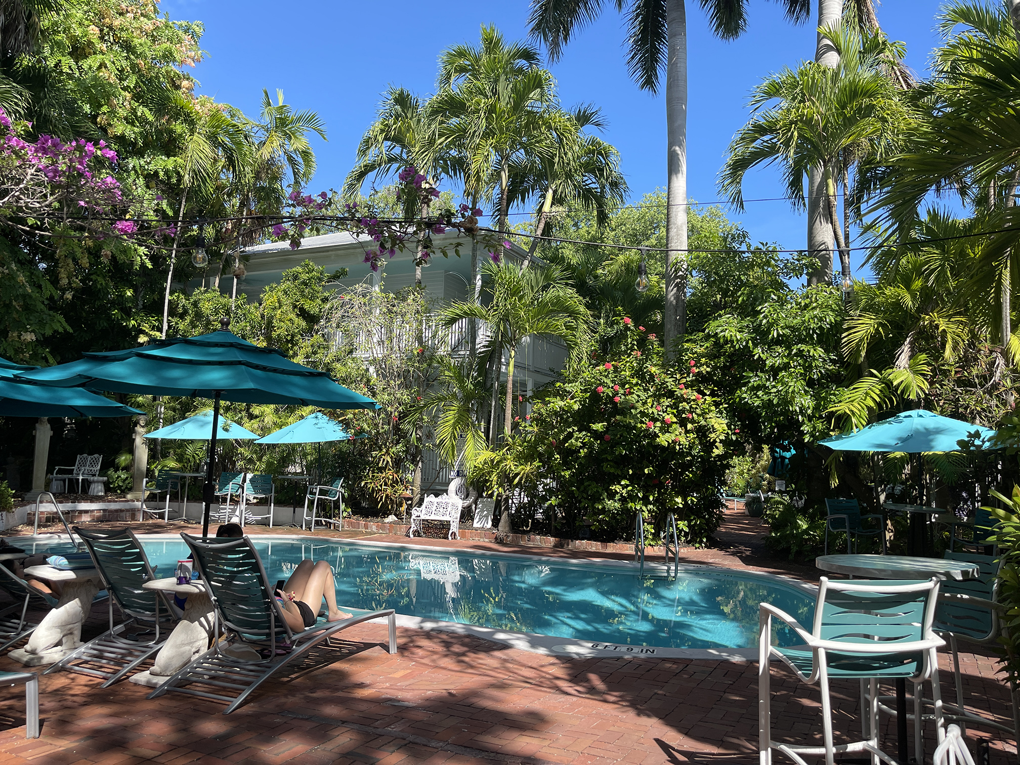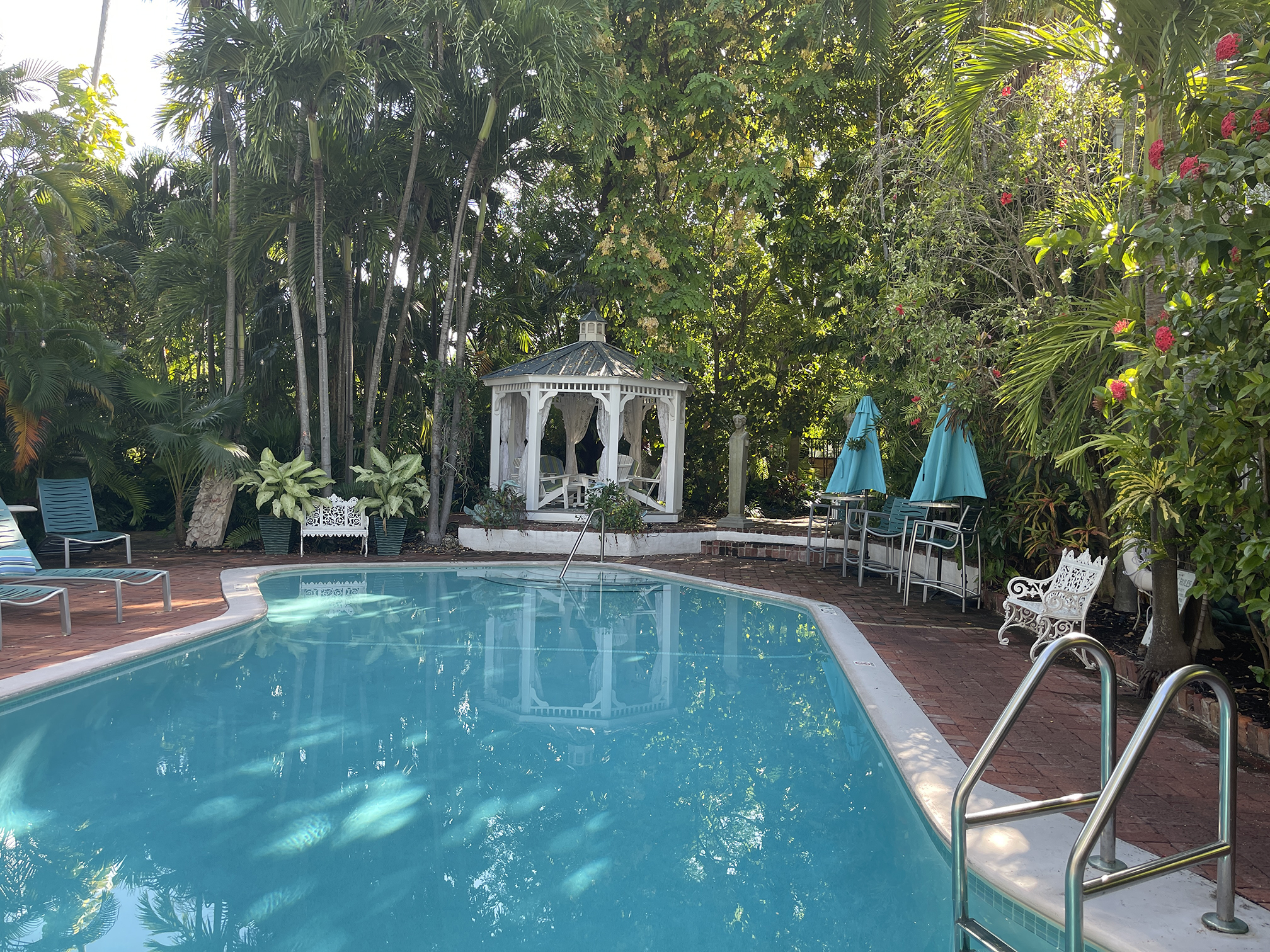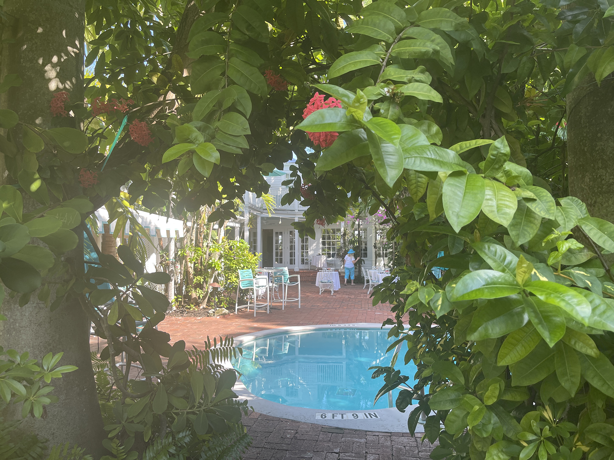 Feeling a bit down, we walked to the courtyard and saw Al and Lynn having breakfast under the porch area that was mostly covered from the rain. We sat down and told them what was going on. I grabbed a cup of coffee and we talked for a while. We weren’t sure how things were going to play out and what have you. As we waited for the rain to subside, I grabbed another cup of coffee. My husband and I weren’t really hungry so we decided to stop somewhere later to get something to eat. We came to the realization that the rain wasn’t going to stop anytime soon. Al and Lynn were supposed to go out on the water that day to the sand bar but it was postponed until the following day. Since they didn’t have any plans and my husband was in the mood for a bloody mary at the Tree Bar, we all grabbed umbrellas that are provided at the Gardens and made our way out the back to Simonton St. Again, Angela St. was completely flooded. There was no way you can walk out on the street at that point.