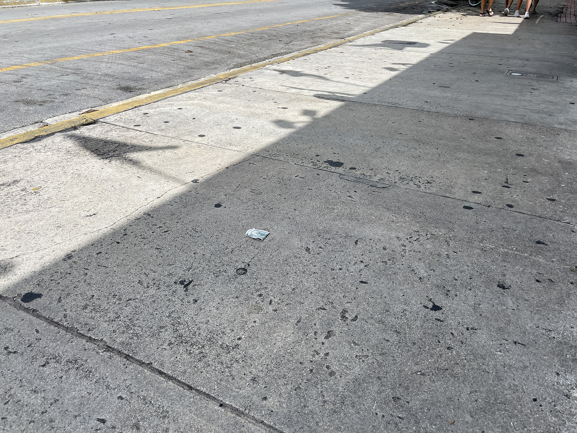 While we were having a couple of sips, I saw this guy walk down the sidewalk and it appeared he dropped money. I was going to say something, but my husband realized he was sitting at the next table behind us and was trying to see how many people would stop to pick it up. I think it was maybe a $100 bill?