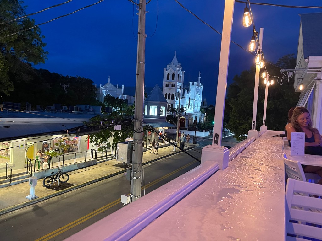 It wasn’t very big but the place was lit up with hues of purple and blue. The place was filled with a lot of people, but just as my husband and I were going to the bar to get a couple of drinks, a table opened up. I sat down while my husband went to grab us a couple of drinks. As I took a couple pictures of Duval street below, I thought to myself how we finally went to this place. Now if we can eventually get to the Chart Room, but that’s for another time.