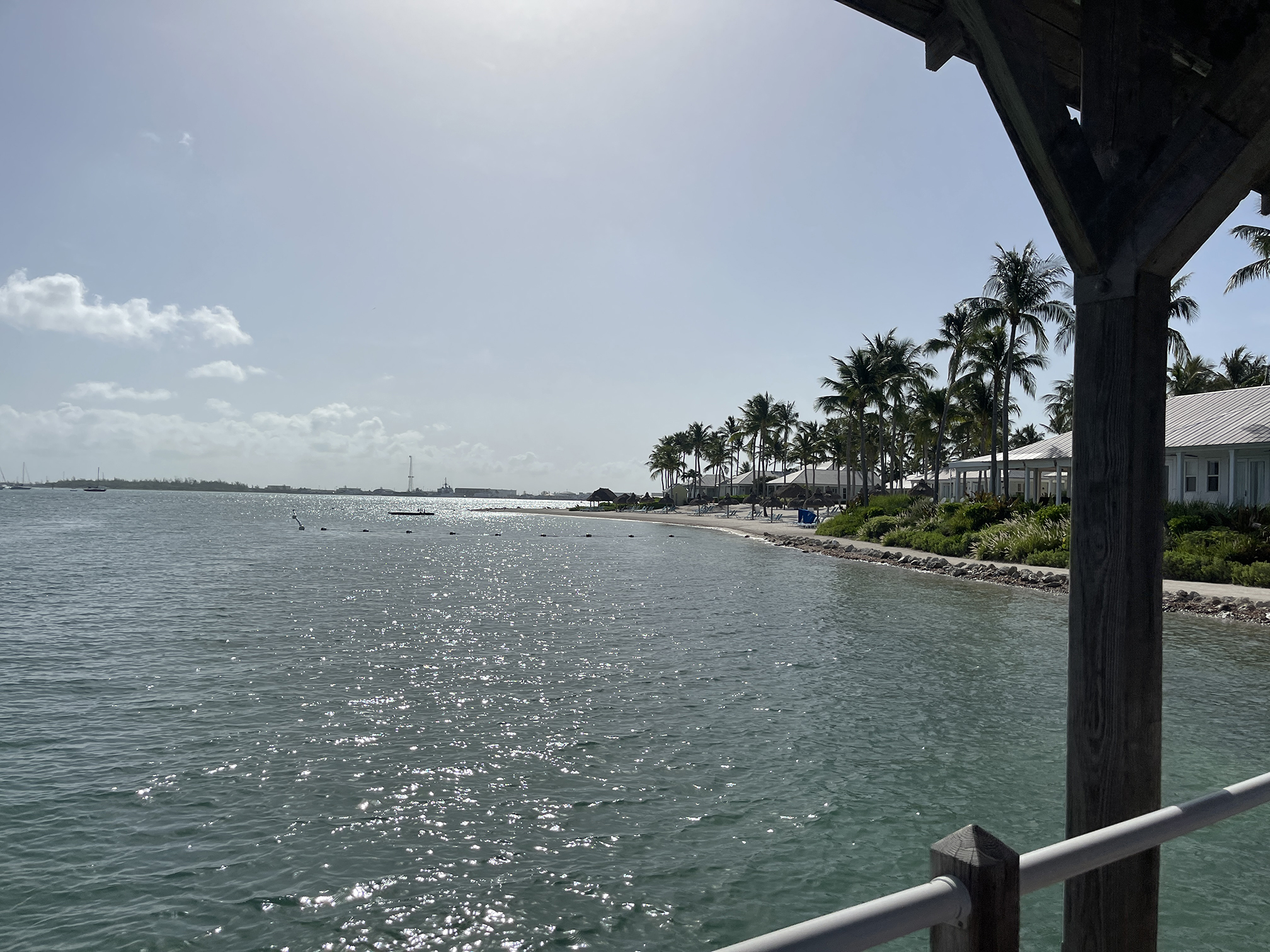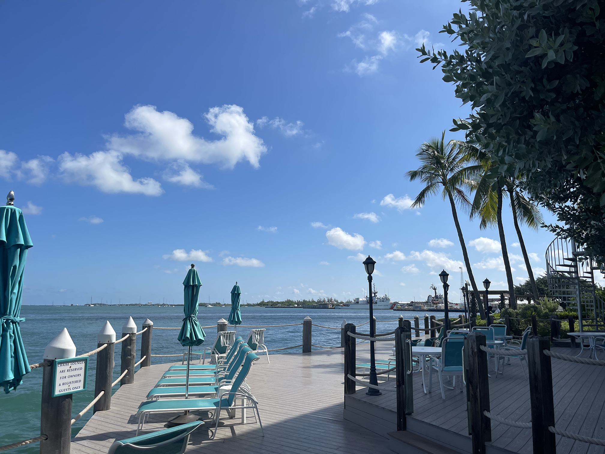 Once we were dropped off, we walked down to wait for the water taxi. There weren’t any cruise ships in town, so we had a beautiful view of Sunset Key. Not before long we saw the little boat approach the dock. There were already people waiting as well to head on over to Latitudes for breakfast. You can always tell who is going to Latitudes to dine at the restaurant since they tend to be dressed in their finest. Not so much for breakfast, but usually a little bit spiffier then regular Key West wear.