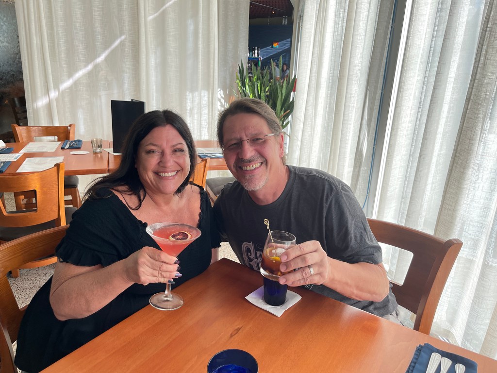 As we were walking towards the pool and pool bar we saw our friends waiting for us. We gave Brent and Julie big hugs and gave in to having a welcome beverage before going to our room to unpack our things.