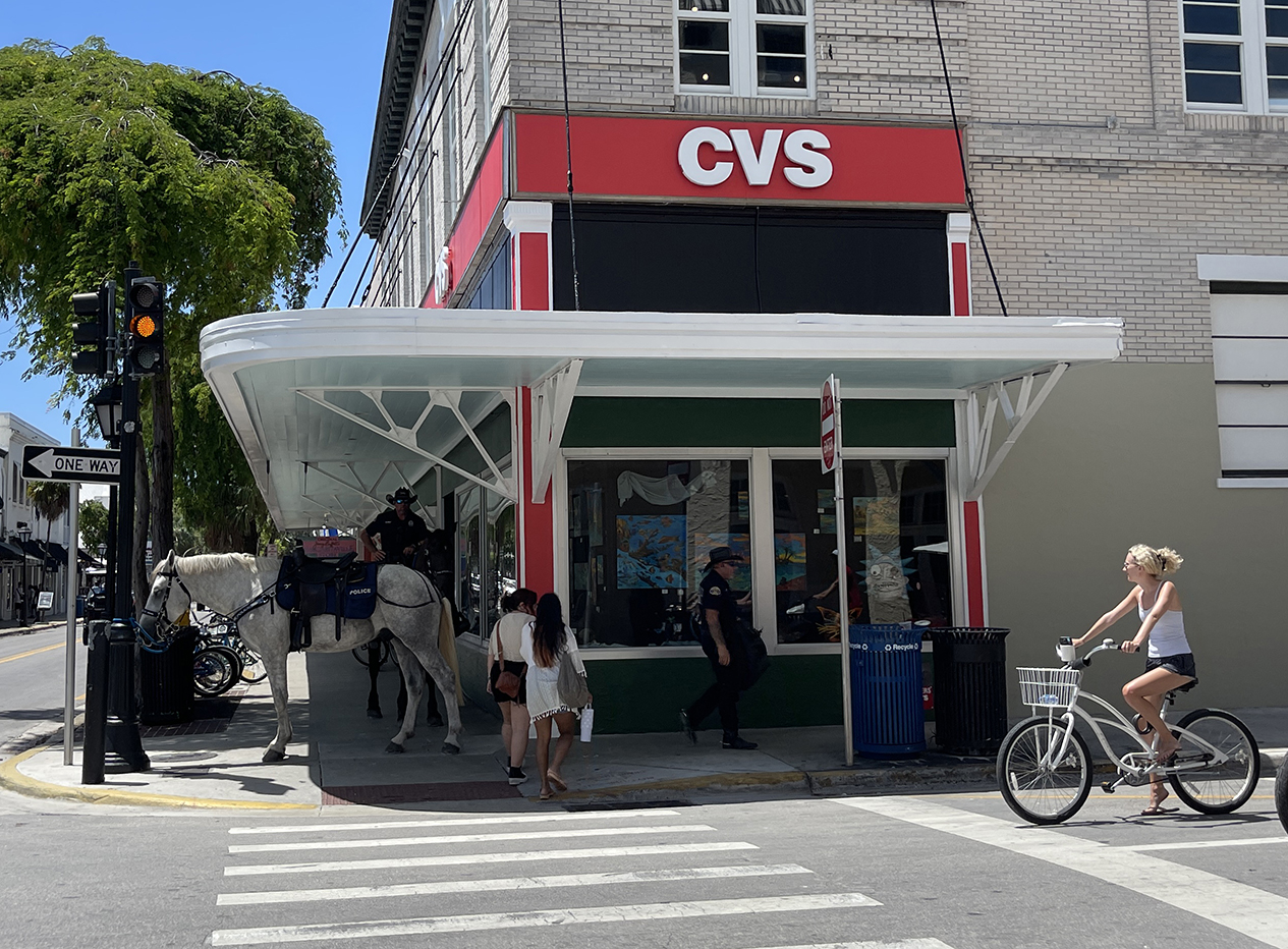 We thanked Ramsey and walked down towards the Gardens. On the way, we saw a couple of policeman on their horses in front of the CVS store. Only in Key West I thought – gotta love it.
