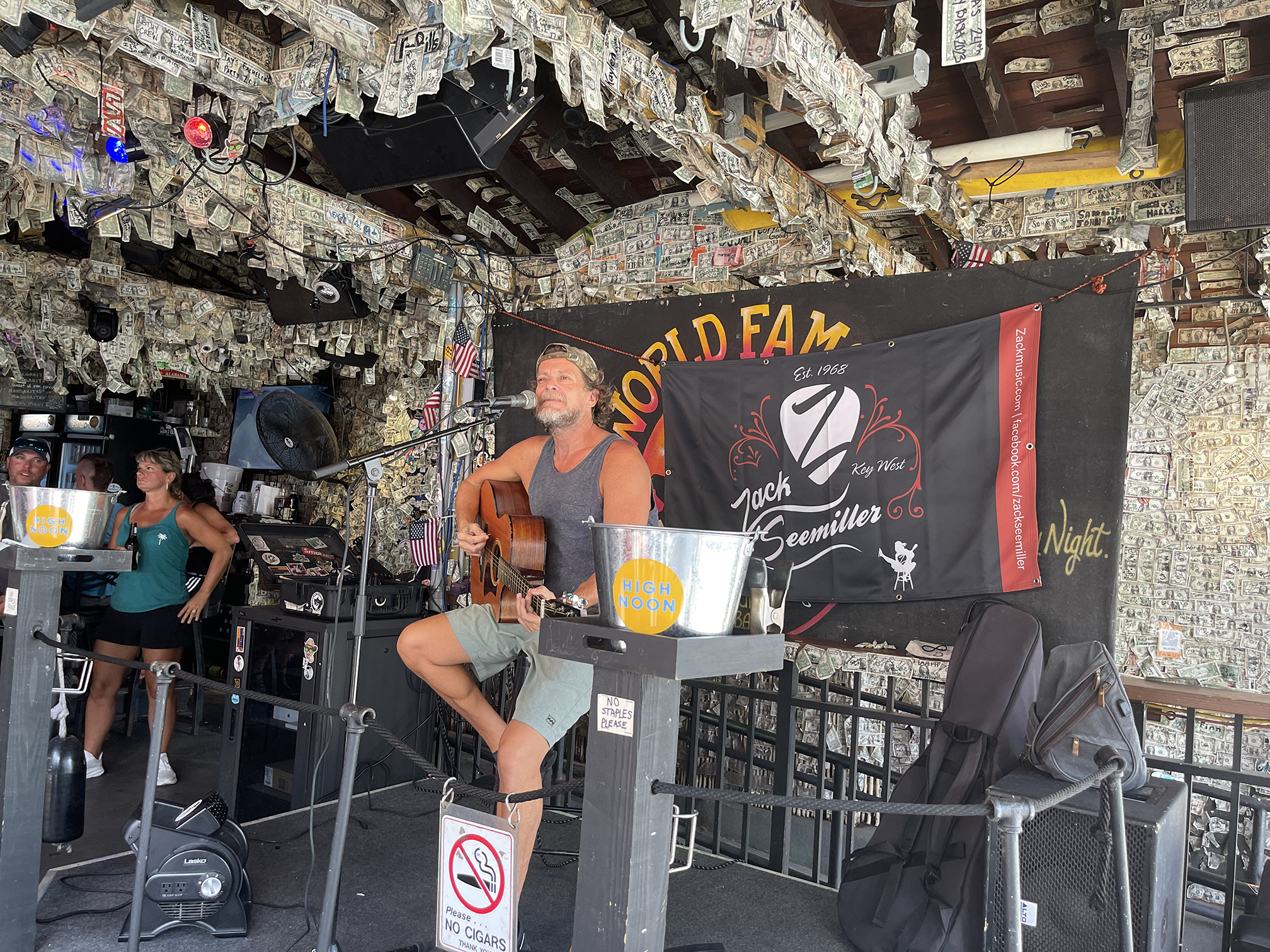 Not wanting to get too comfy we headed back on Duval and making our way back to the Gardens. As we were nearing Willie T’s, I heard a familiar voice singing – it was Zack Seemiller singing. I kept thinking that he left town, like most local musicians due in Key West during the Summer months.