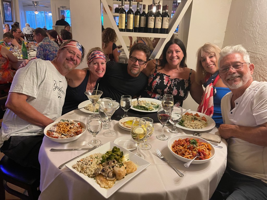 We walked in and Brent was relaxing in the pool while Julie was hanging out at the pool bar with Al and Lynn. My husband ran to our room to change into a pair of swim trunks, while I decided to take a seat at the bar. We talked for a while and realized no one had plans for dinner that evening and it was the 4th of July! After much discussion it was decided that we should all go to La Trattoria for dinner. Italian restaurant again? I thought to myself. Why not. I just did a 5K I can indulge in more pasta. So I went on my phone and clicked on the Open Table app and reserved a table of 6 for 6:30pm.