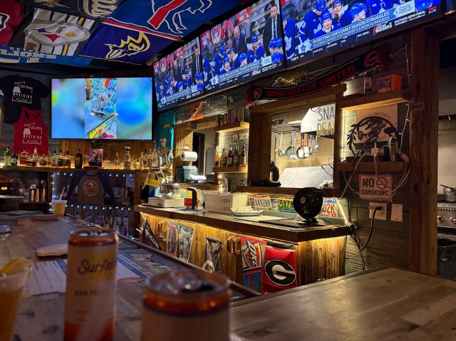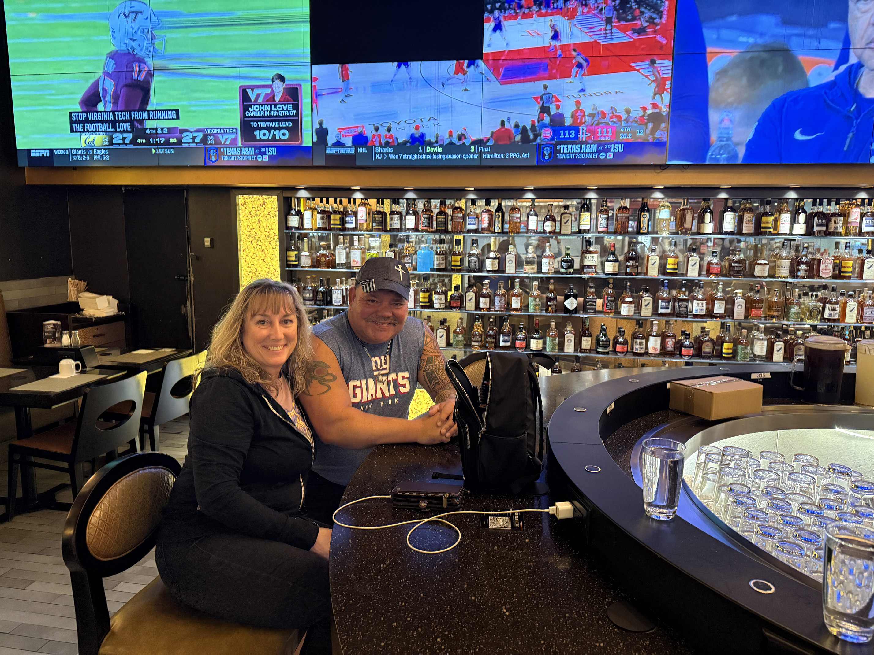 Our food arrived and it was okay. At least we were able to put something in our stomachs after the entire ordeal. My husband and I ordered another couple of drinks while our friends headed in for the night. I looked up above us and saw there were TVs hanging. It was game 7 of the World Series and I asked the bartender about turning on the TVs. She said that they are all smart TVs and that she could try working them. She made a few attempts, but no such luck.