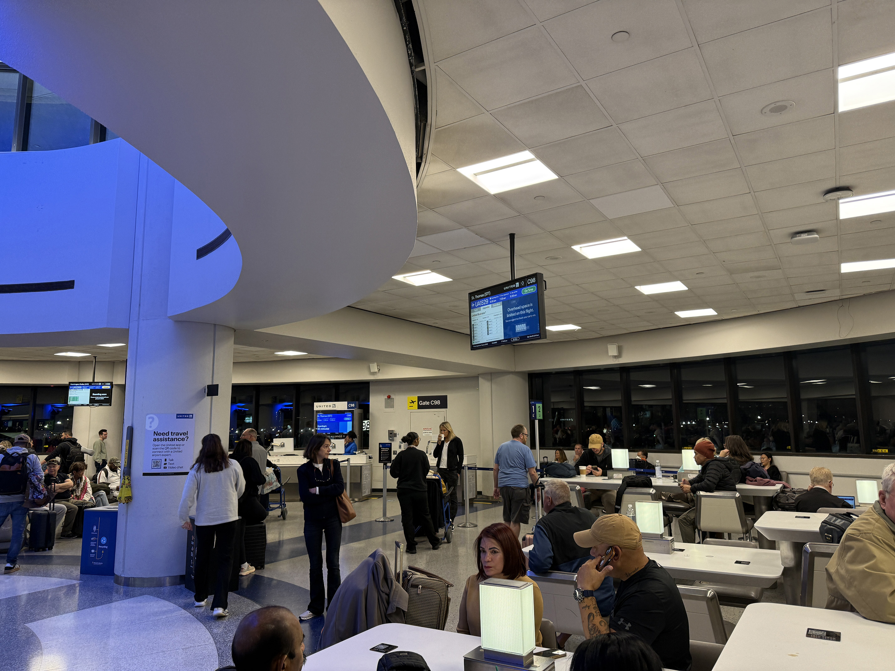 We walked up to the TSA line and the other line wasn’t set up like the day before. I think there were perhaps a handful of people ahead of us and it was a breeze through security. We walked to the United Gate and only saw a few people in the waiting area.