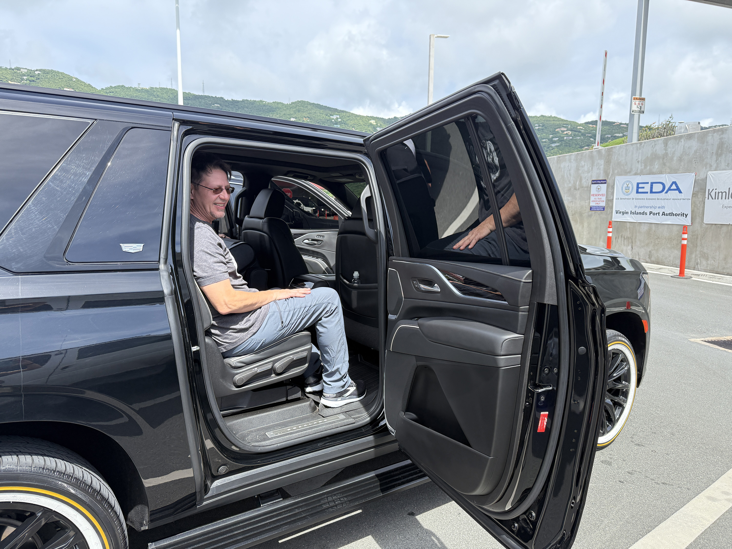 Neither of us had checked bags so once we all made a quick pit stop and then we walked back out of the airport where I immediately spotted my name on display. The gentleman smiled as I introduced myself. He walked us over to where the large SUV was parked.