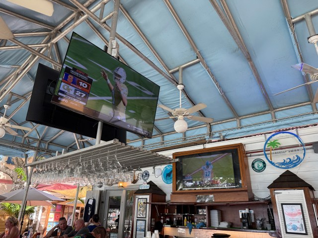 When we walked in to High Tide, it was pretty empty. All the action was down the other end. They had the World Series on the TVs and I thought perfect. We can order a drink and catch some of the game. (For some reason we were unsuccessful getting the game on our TV at the villa throughout the entire World Series.)