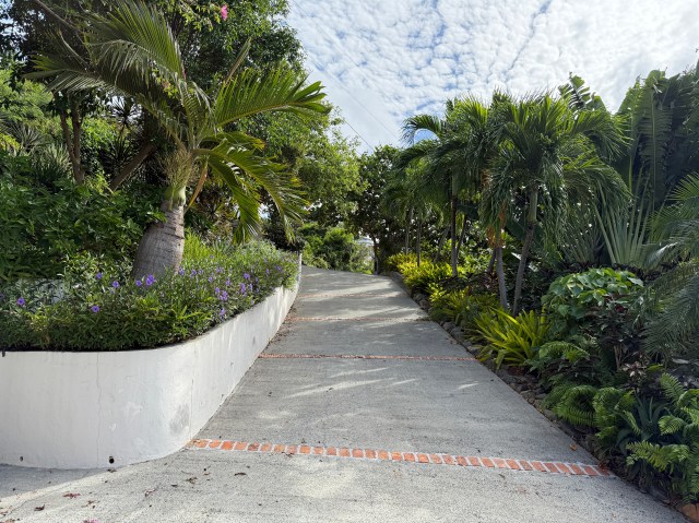 We piled into the jeep and my husband began our drive to Leeward Villa. I pulled up the pin on my phone and it was pretty straightforward. We had to go up Jacob’s Ladder, past the Westin. Last year we were staying in the Virgin Grand Estates so this villa was a little further down the south side. After we pasted the road to the Virgin Grand Estates (and the direction to the Windmill Bar), it was a few more turns before I saw the sign for Leeward. It was an awkward right turn down into the driveway (it is located right off the main road). My husband successfully managed to park the jeep and we grabbed all of our things.