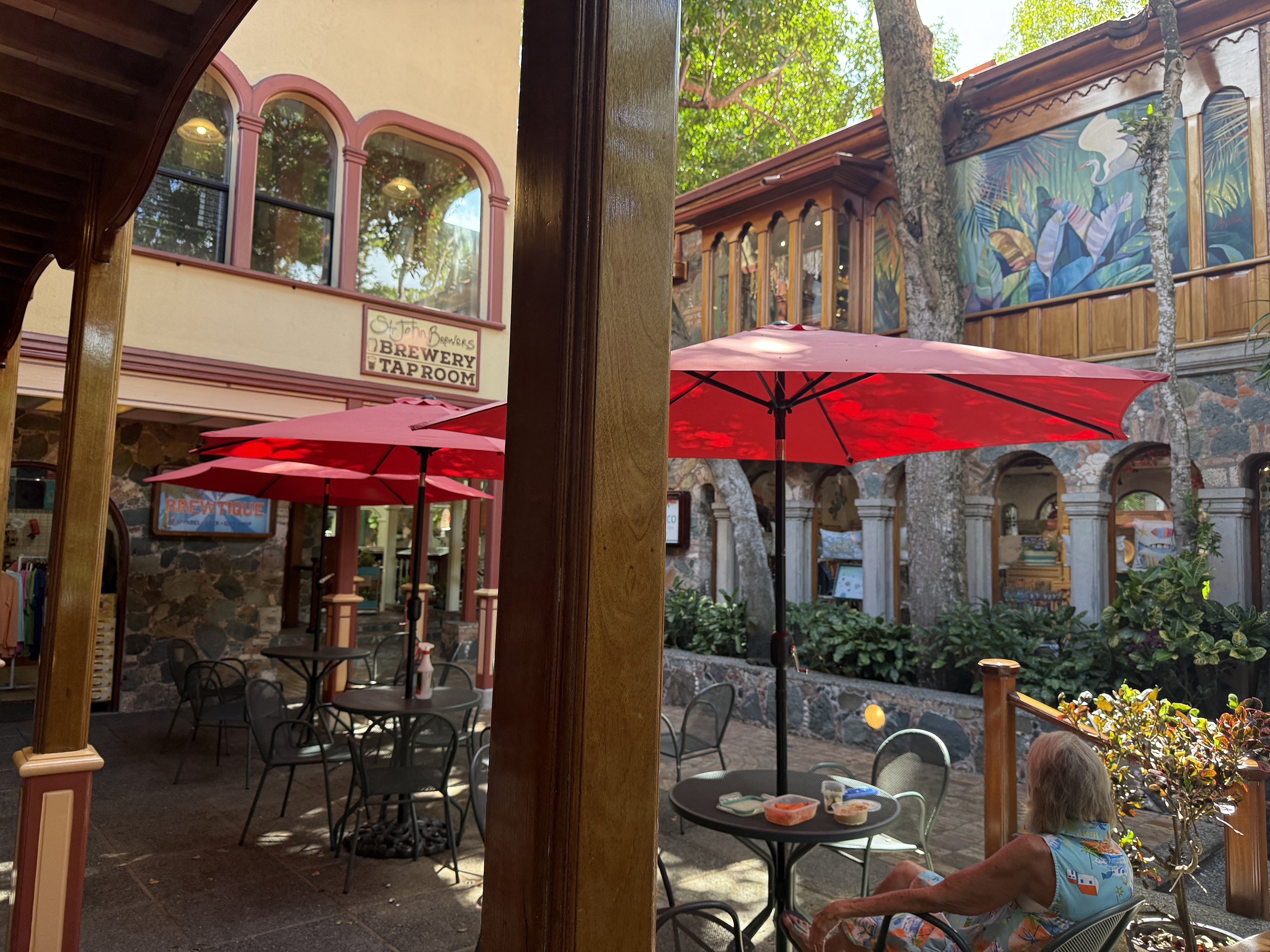 My husband drove us back to Mongoose Junction. I was thinking that there weren’t going to be any parking spots, due to the fact it was just after 1pm, but when we arrived, there were only a handful of parking spots taken. I couldn’t believe it. Usually we are stalking people walking towards their vehicles, hoping they were leaving. I guess like the bartender said at Cruz Bay Landing the day before, it really was slow season.