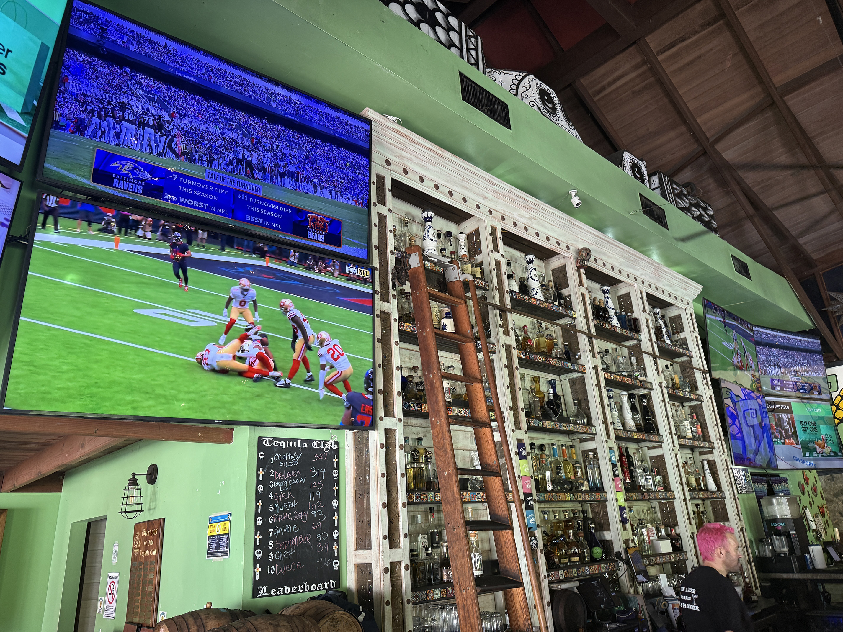 We walked through the shops and immediately my husband walked up towards the Tap Room. I honestly didn’t want to go in, because last time we went there, I was freezing cold wearing my wet swimsuit. So when we walked in, I felt a sense of relief when all of the seats at the bar were taken. Plan B – since Greengo’s was right around the other side, that’s where we went to next.