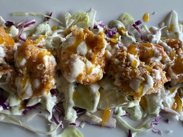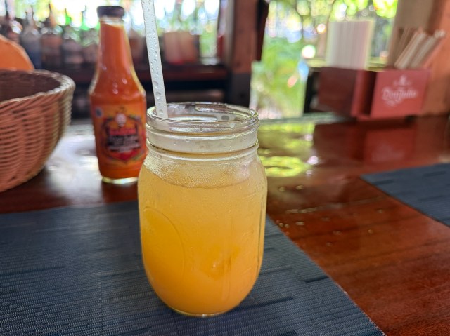 When it arrived, it was served in a mason jar – which I love when places to that. I took a sip and it was tasty. It was a little different not in a bad way, but I think I prefer the Beach Bar bushwhacker. While we were sipping on our drinks, the hunger started to set in.