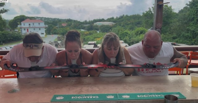 Everyone ordered a drink and then I asked the bartender to take a photo of us. He obliged and asked us if we would like to try a Shot-ski. Why not?
