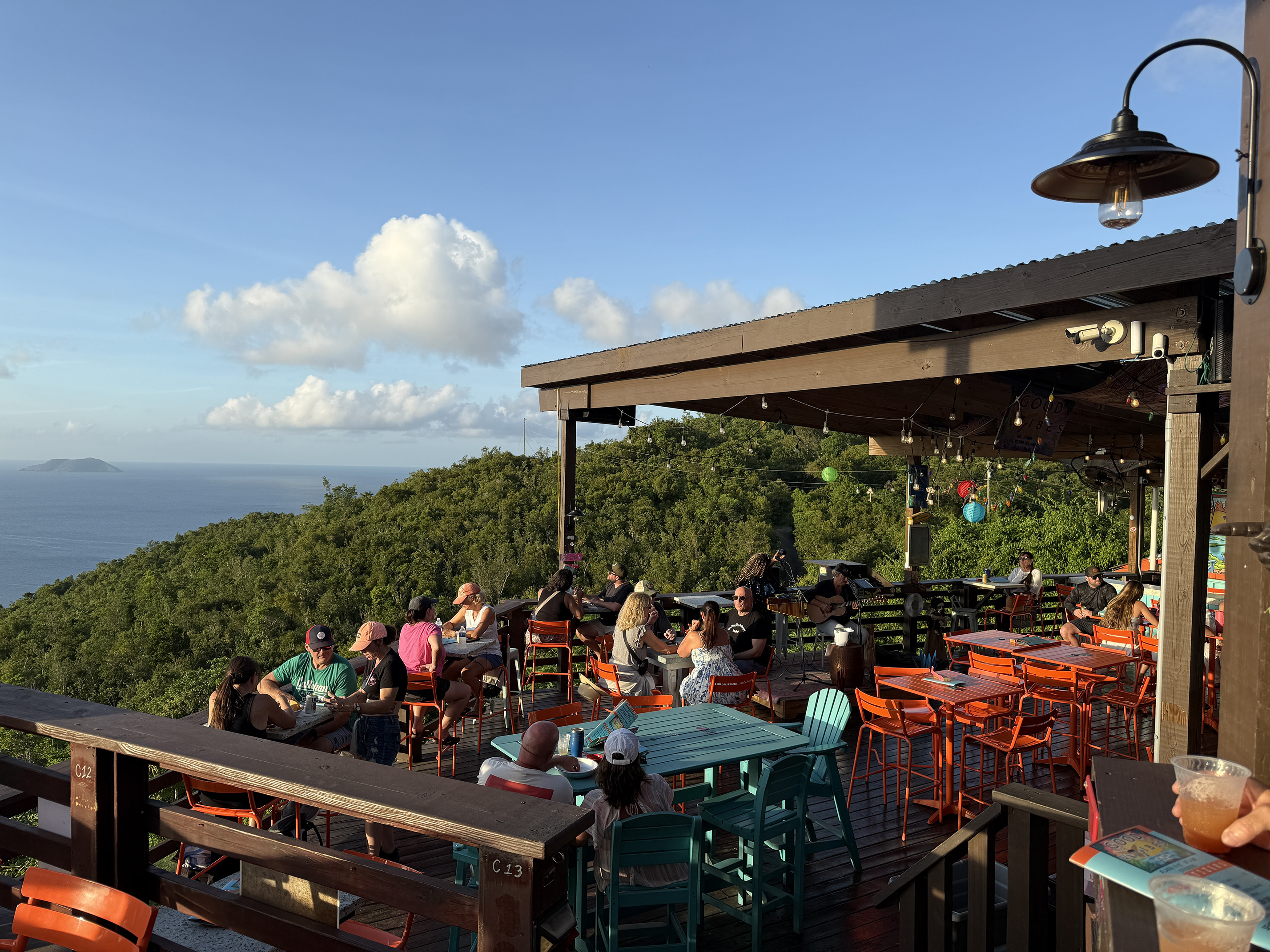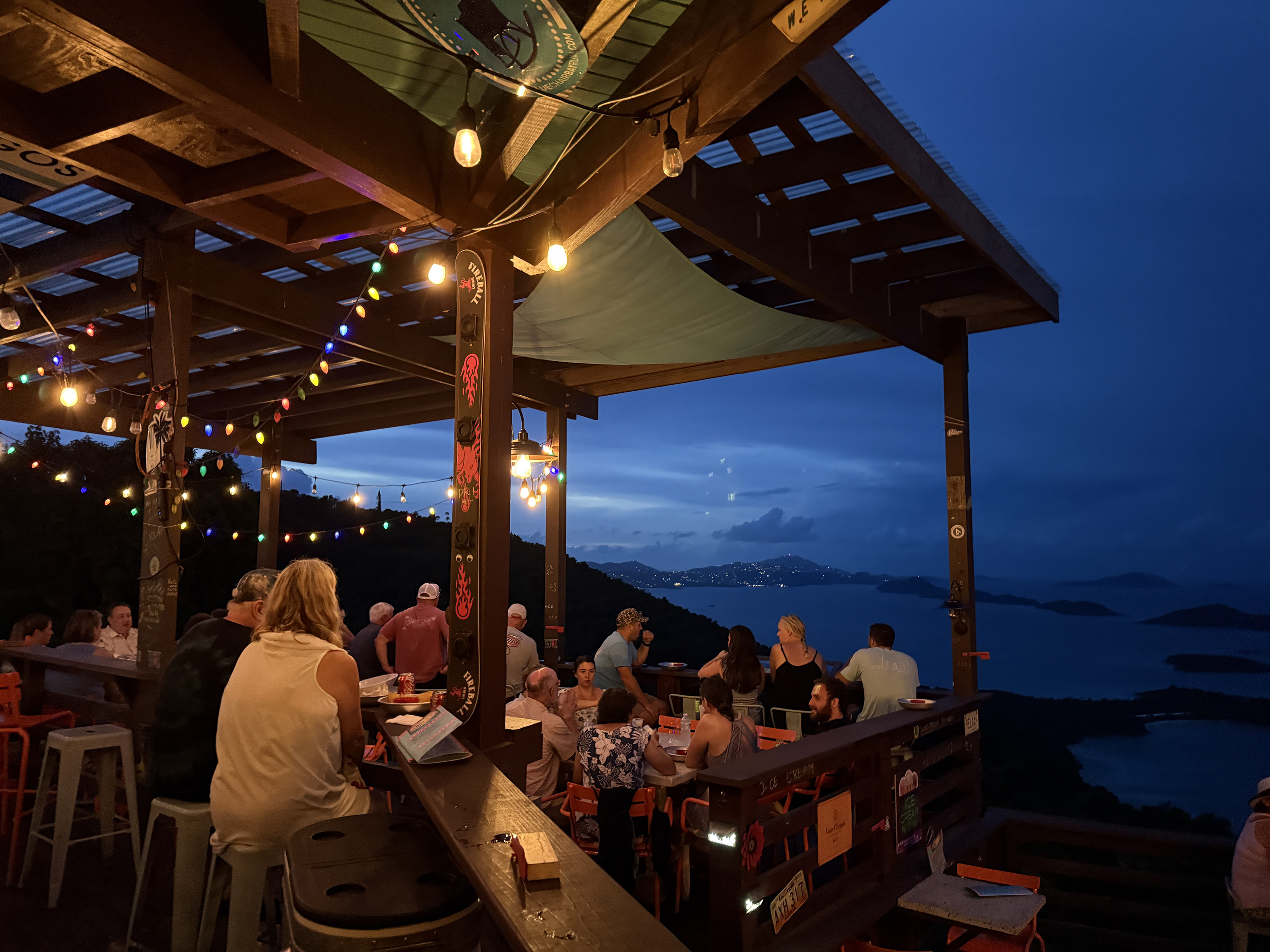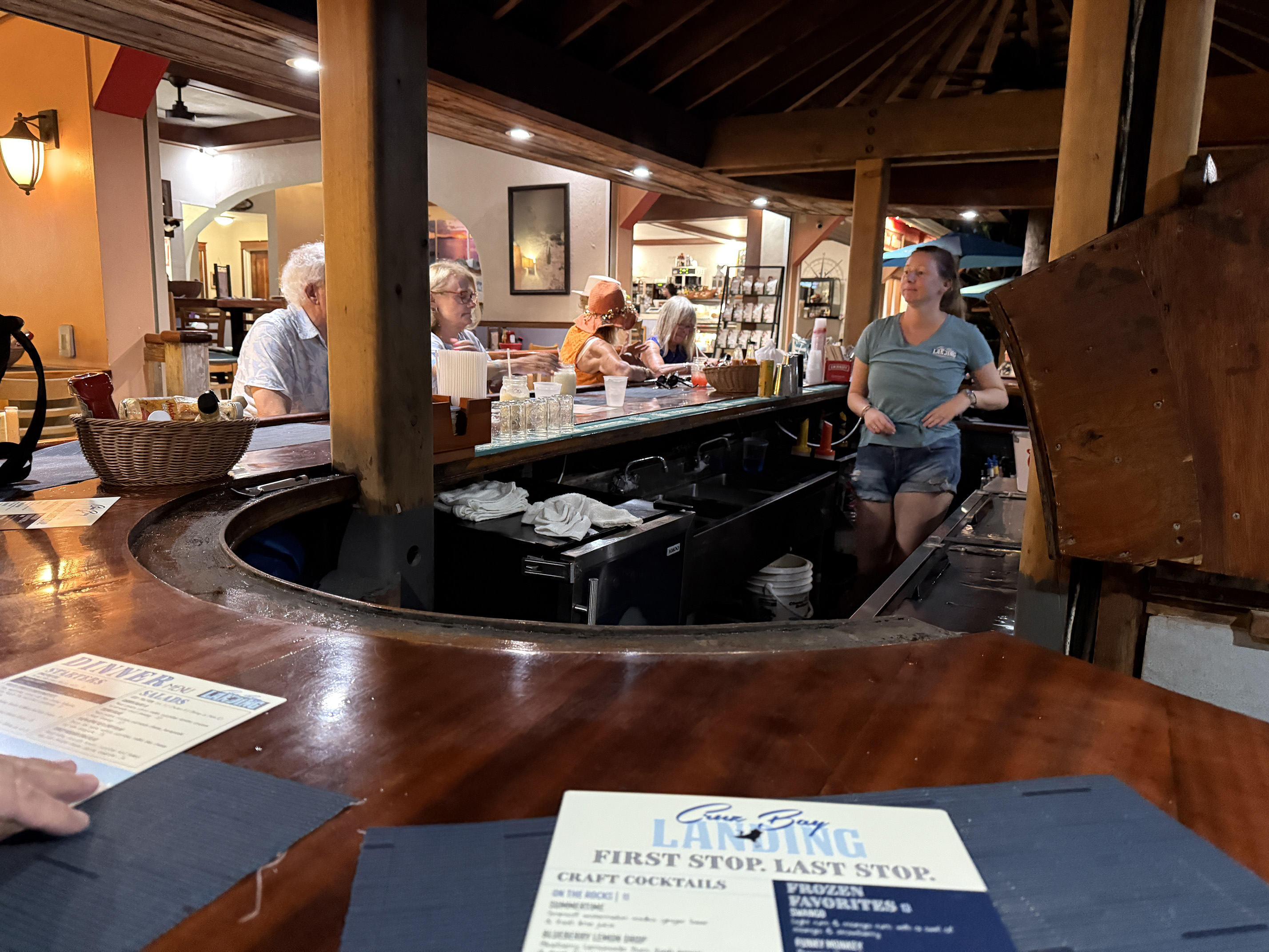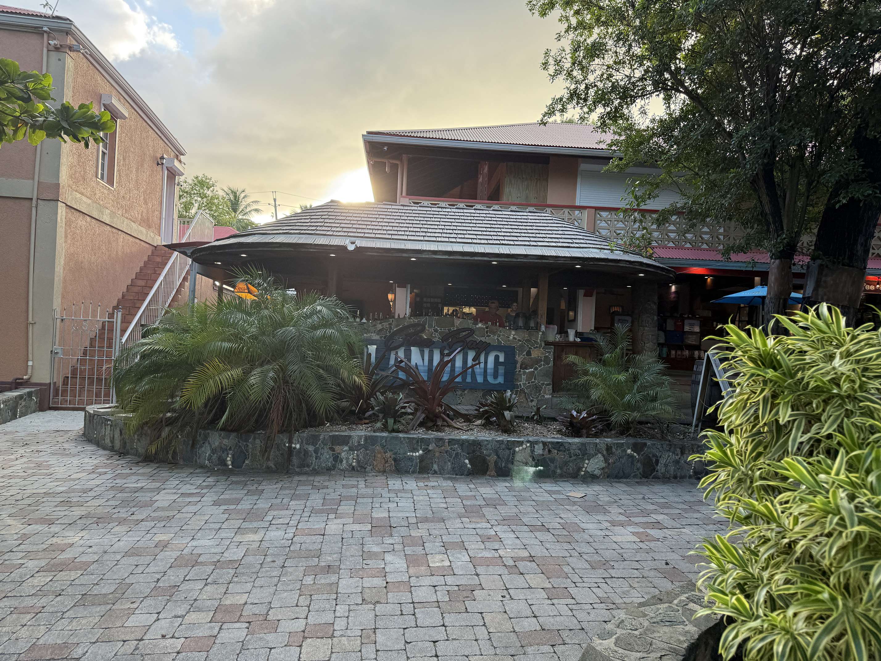 We walked down the steel hill carefully and made our way towards the Cruz Bay Ferry dock. As we got closer, I looked over to my left and saw that Cruz Bay Landing was back open for dinner. Hooray I thought. So we walked to the restaurant and the bar had plenty of empty seats.