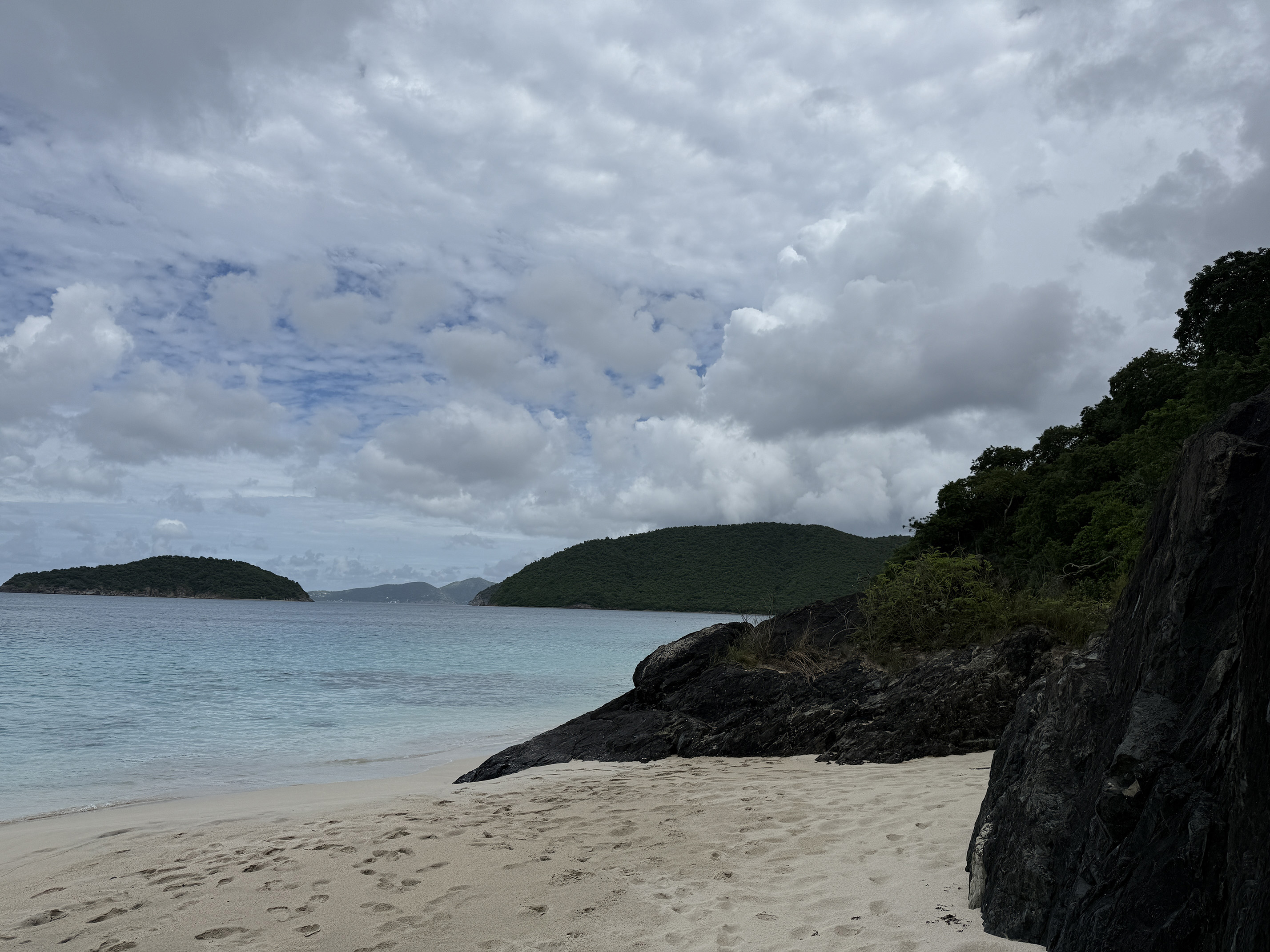 Then it was at that point we were nearing the Trunk Bay overlook. I was hoping that the sun would stay out for our friends to capture some great pictures. Last year, we had mostly overcast weather throughout our stay and when we went to the overlook the sun never came out, making my photos look dark and not capturing those true brilliant blue hues of Trunk Bay.