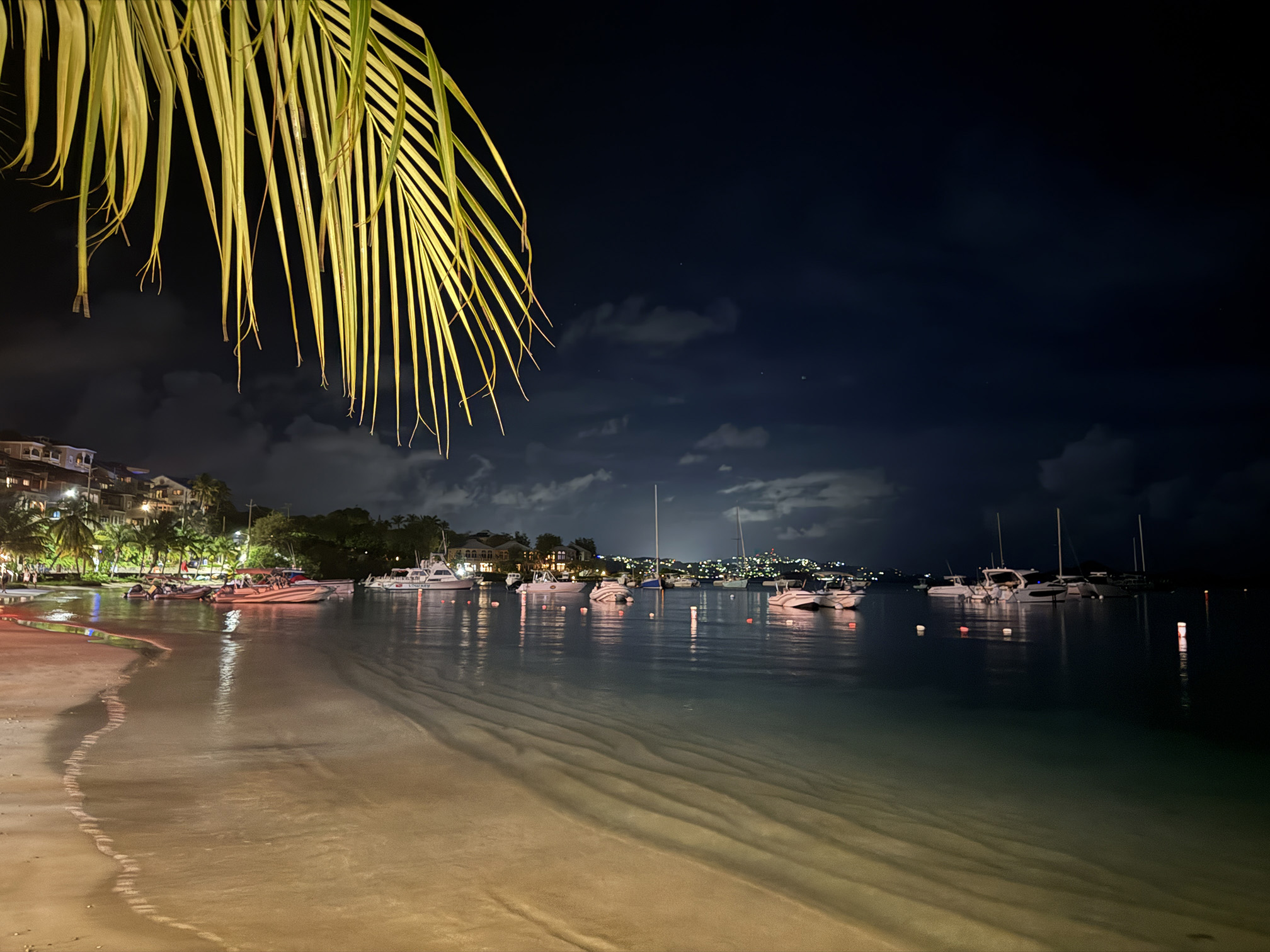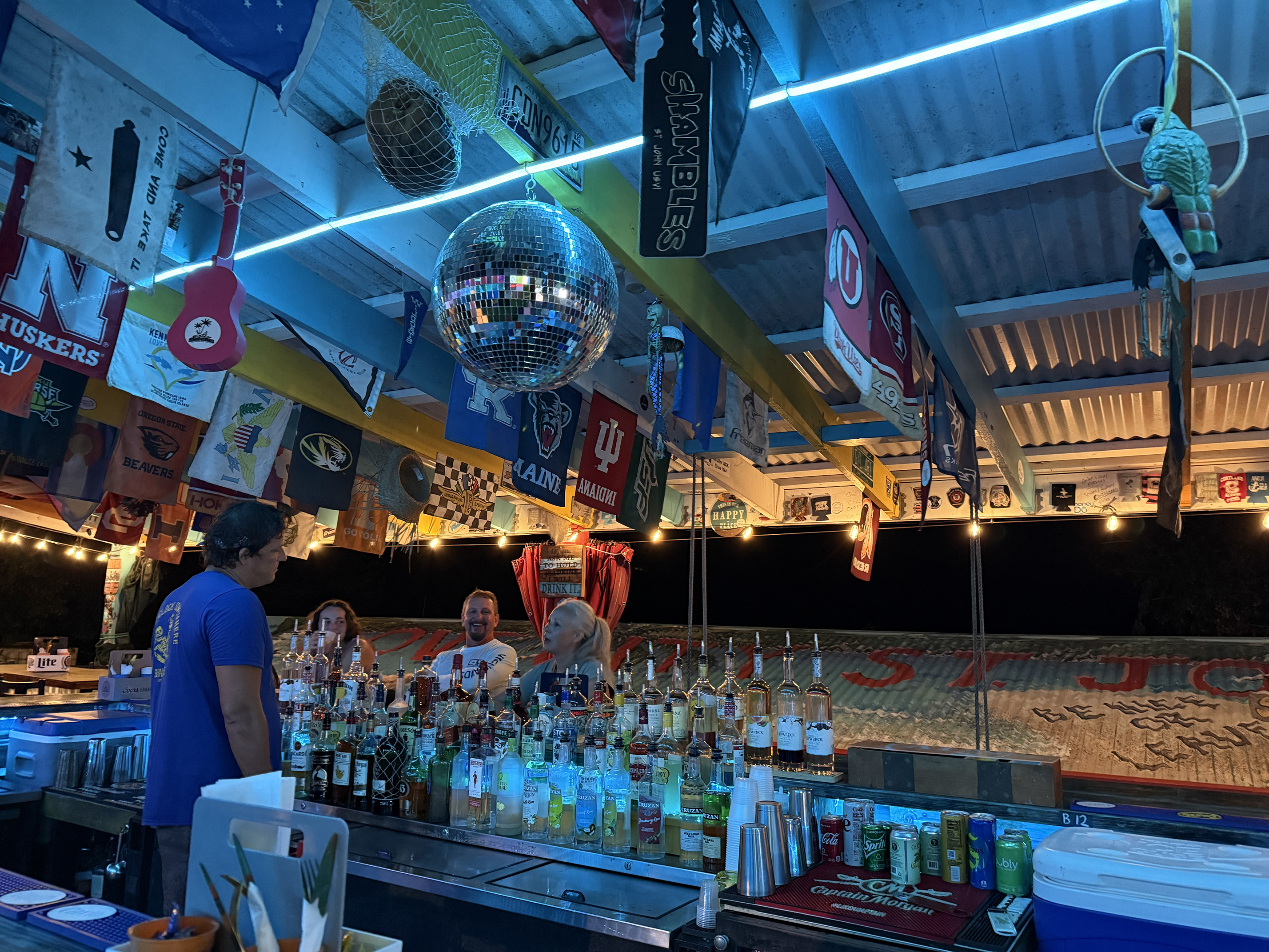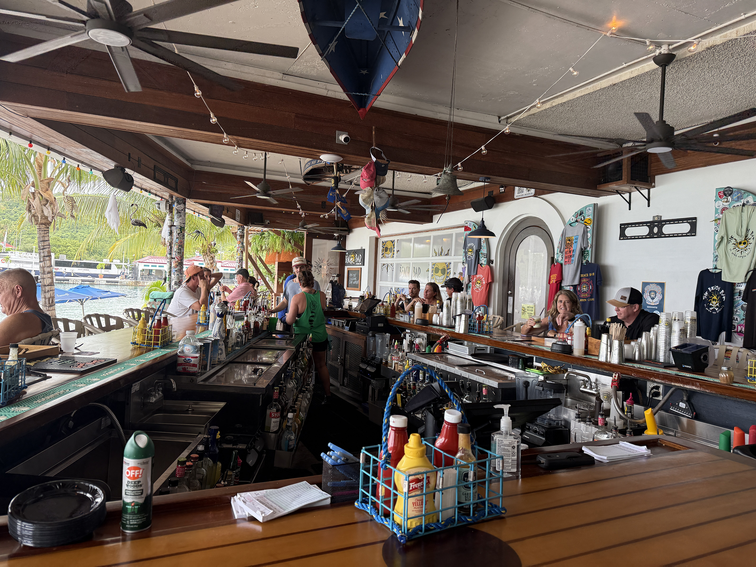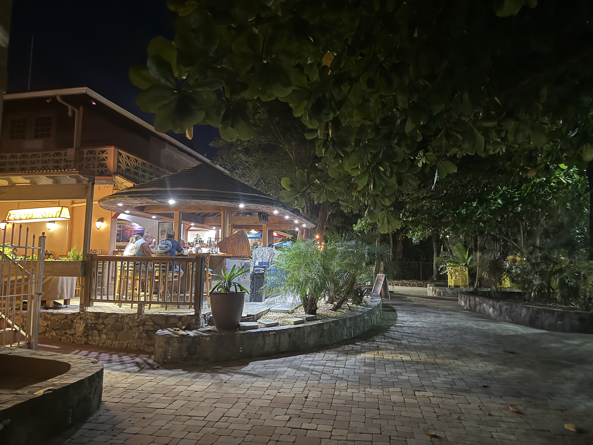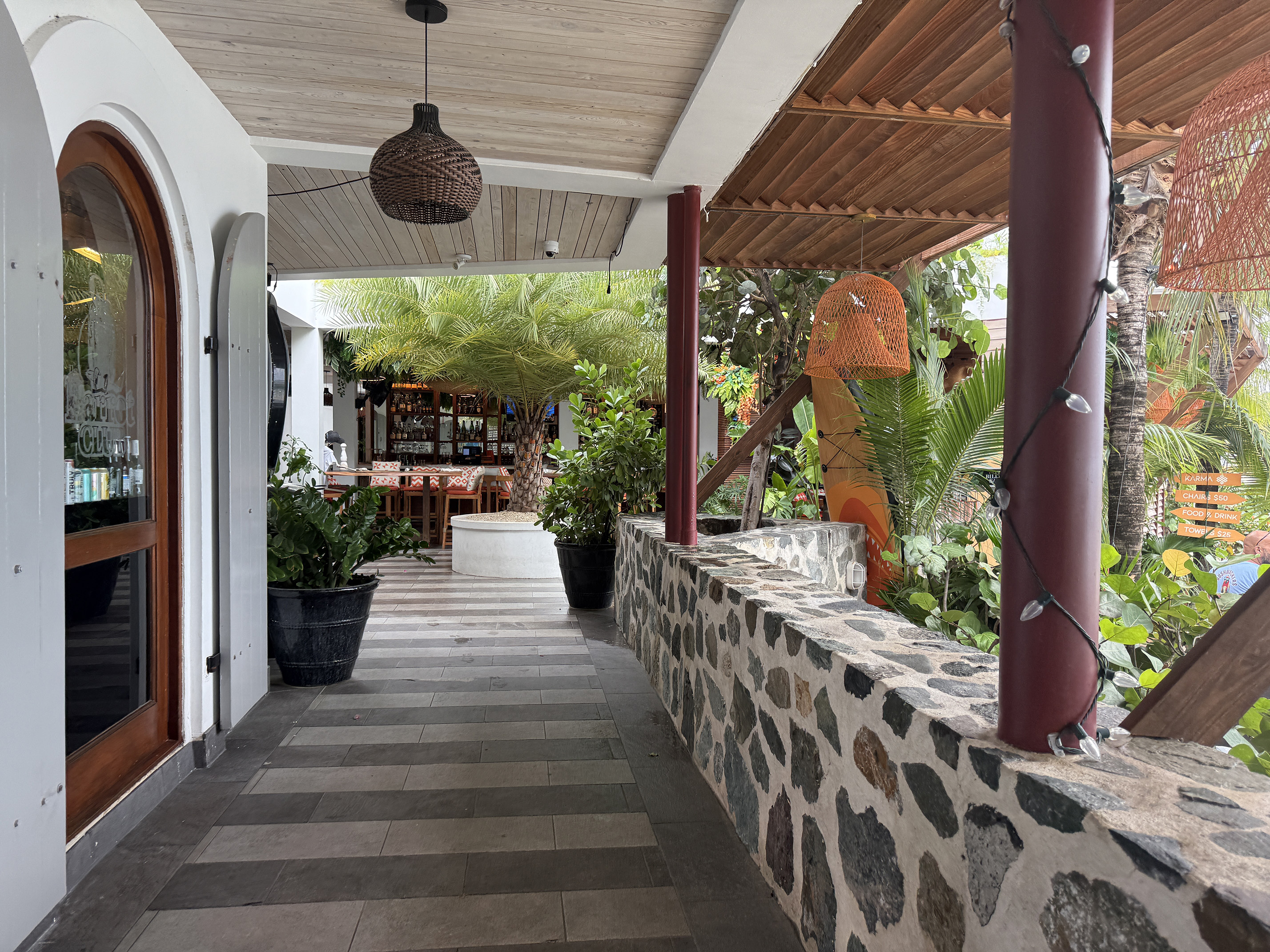 When we were all done with dinner, we walked on over towards the Wharfside. To get to the Beach Bar, we had to walk again through the “doesn’t belong in St. John” Karma restaurant. I couldn’t believe how it overtakes most of the Wharfside. It was packed with people so I guess they do have good food and drink. I mean it is quite impressive what they did with the place, but the vibe just doesn’t work for me.