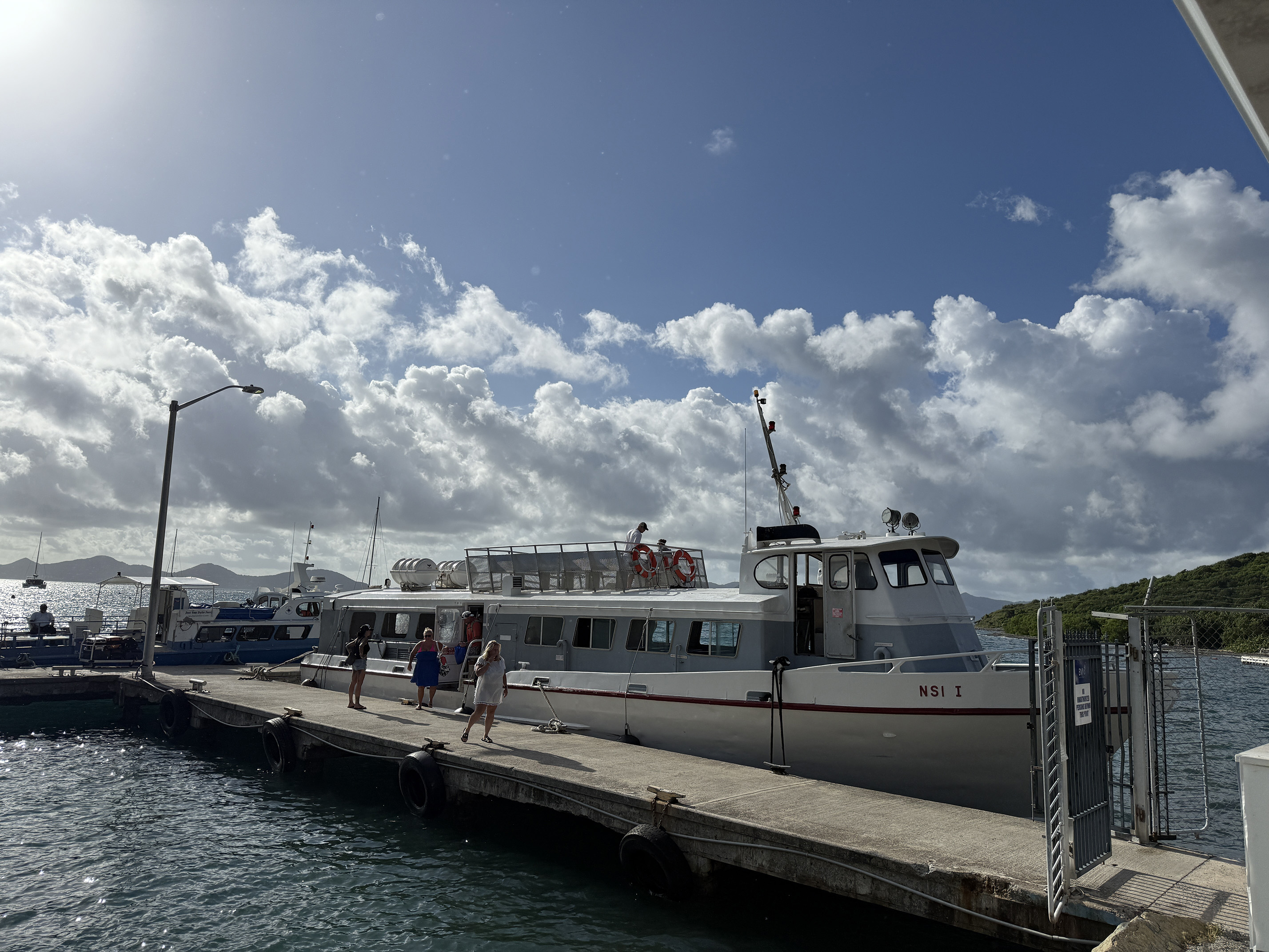 Soon it was time for the ferry operator to make his usual speech about having a great time in St. John and if we are sad to leave. Of course we’re all sad. After the safety speech we loaded into the ferry. Since it was still a bit overcast we opted to sit inside.