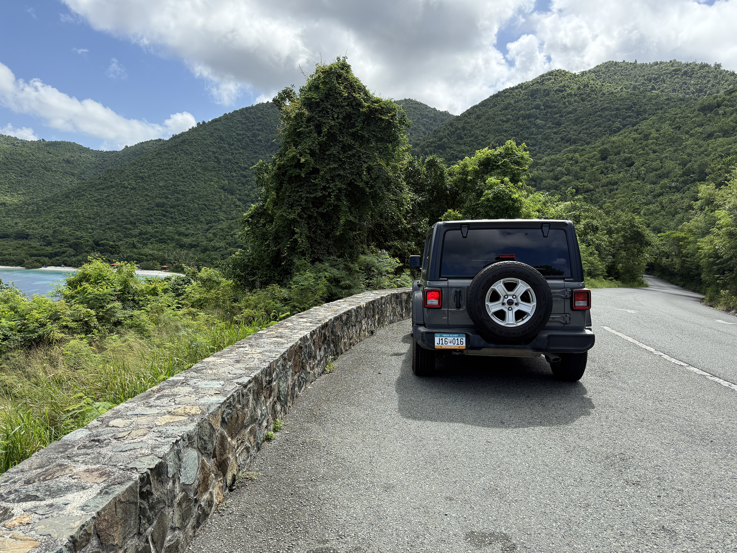 The first stop was the Cruz Bay overlook. We noticed there was a police officer parked at the overlook. Maybe he was on break of some sort. We quickly got out of the jeep and took a handful of pictures.