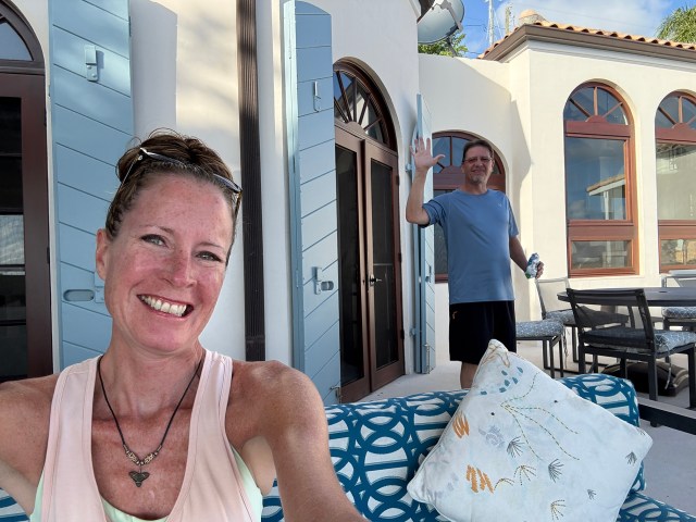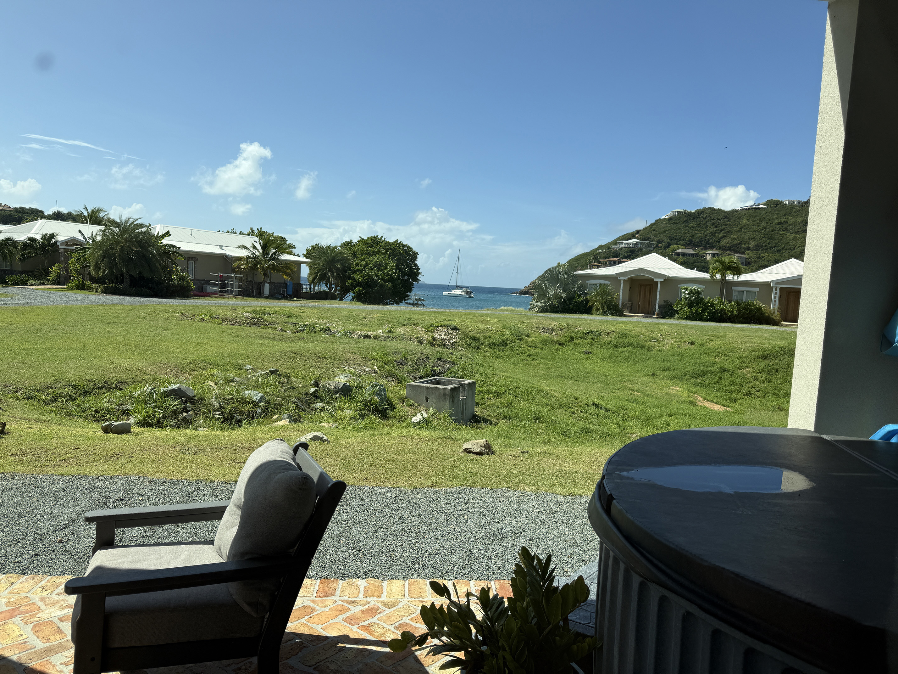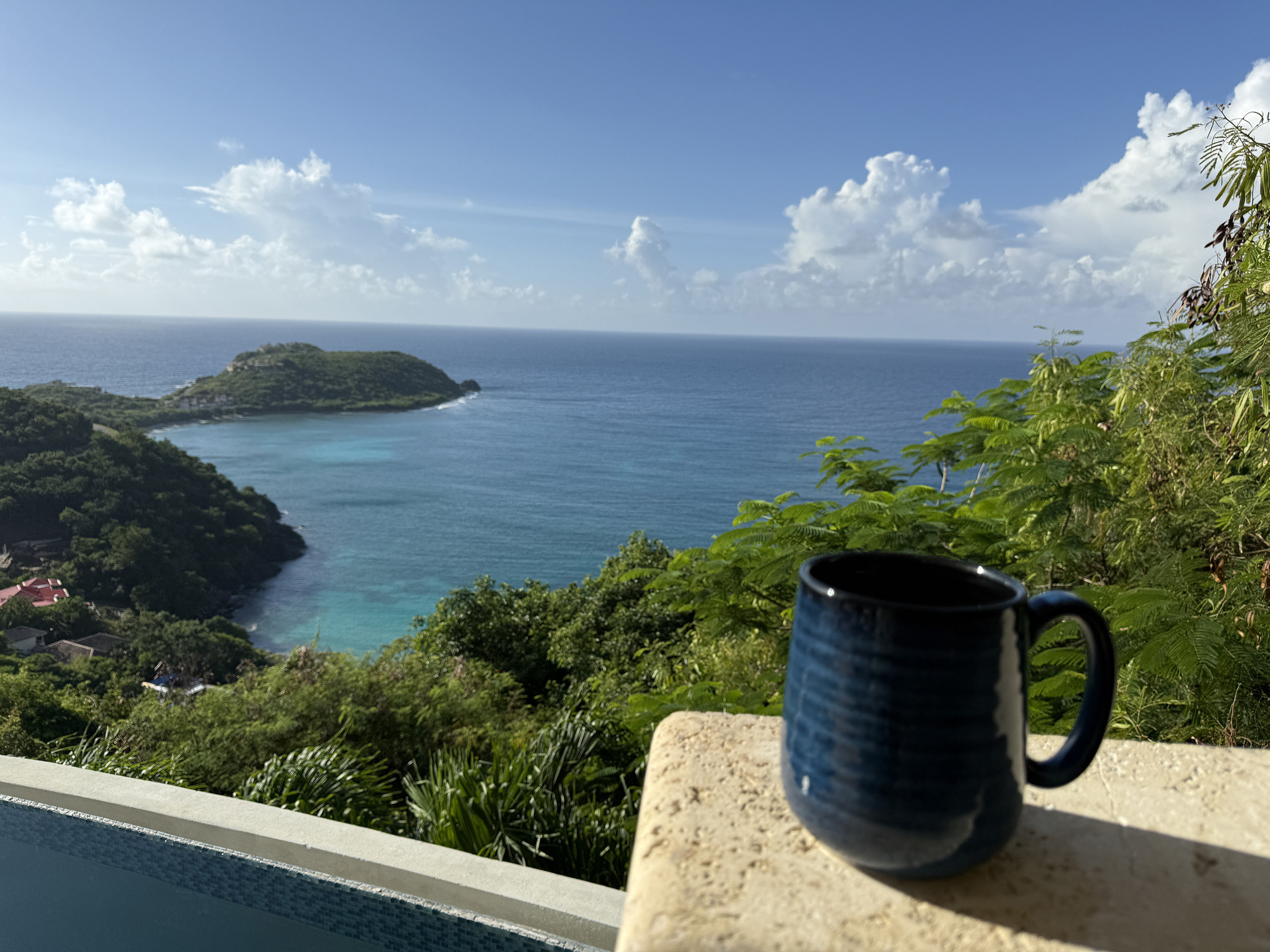 The view of Rendezvous Bay and beyond was amazing. You could even make out St. Croix on the horizon. I walked around the kitchen and saw that all the boxes we had shipped ahead of time made it. Thank goodness because they contained all of our toiletries and important necessities like coffee. And it was our favorite coffee I shipped down from Cuban Coffee Queen in Key west.