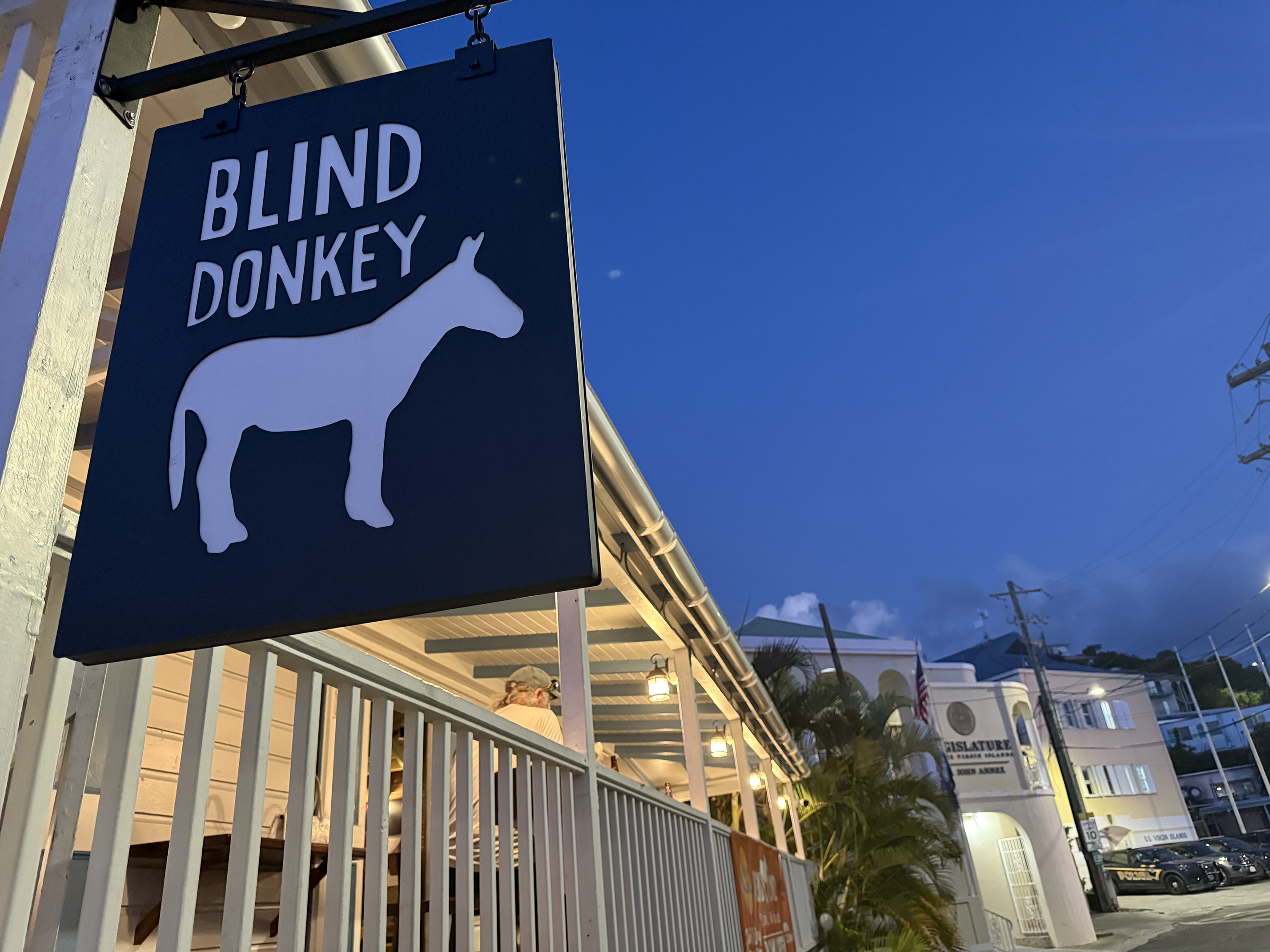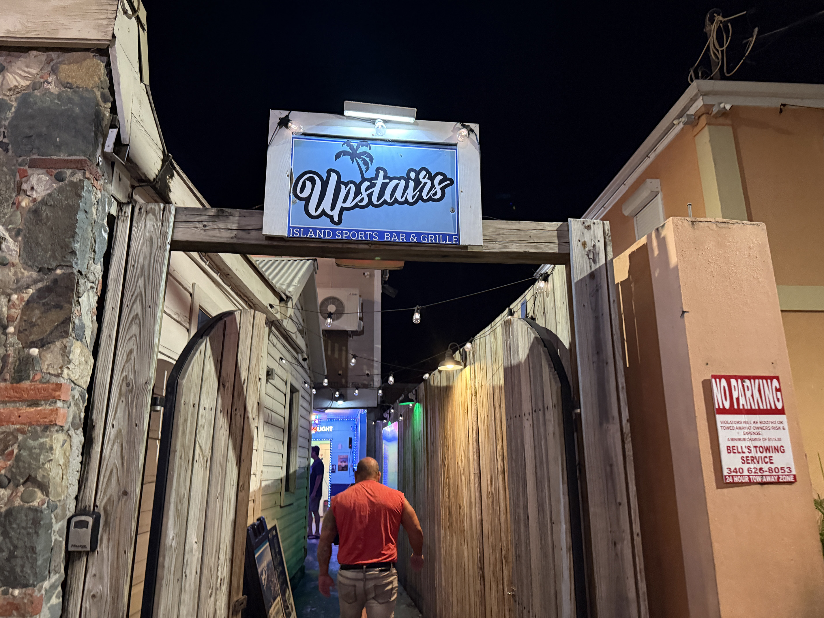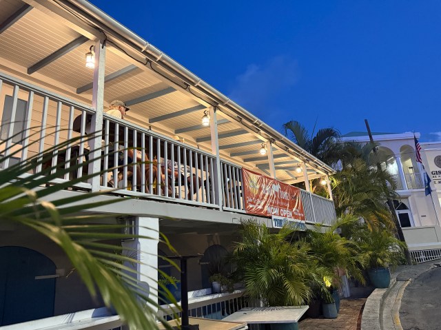 Where were we going to eat? I wanted to eat at Cruz Bay Landing, but they weren’t open yet for dinner. I thought maybe Longboard, but I didn’t think our friends would like the menu. So when we walked out of the Blind Donkey and down the road, my husband noticed the Upstairs Bar. Perfect we both thought.