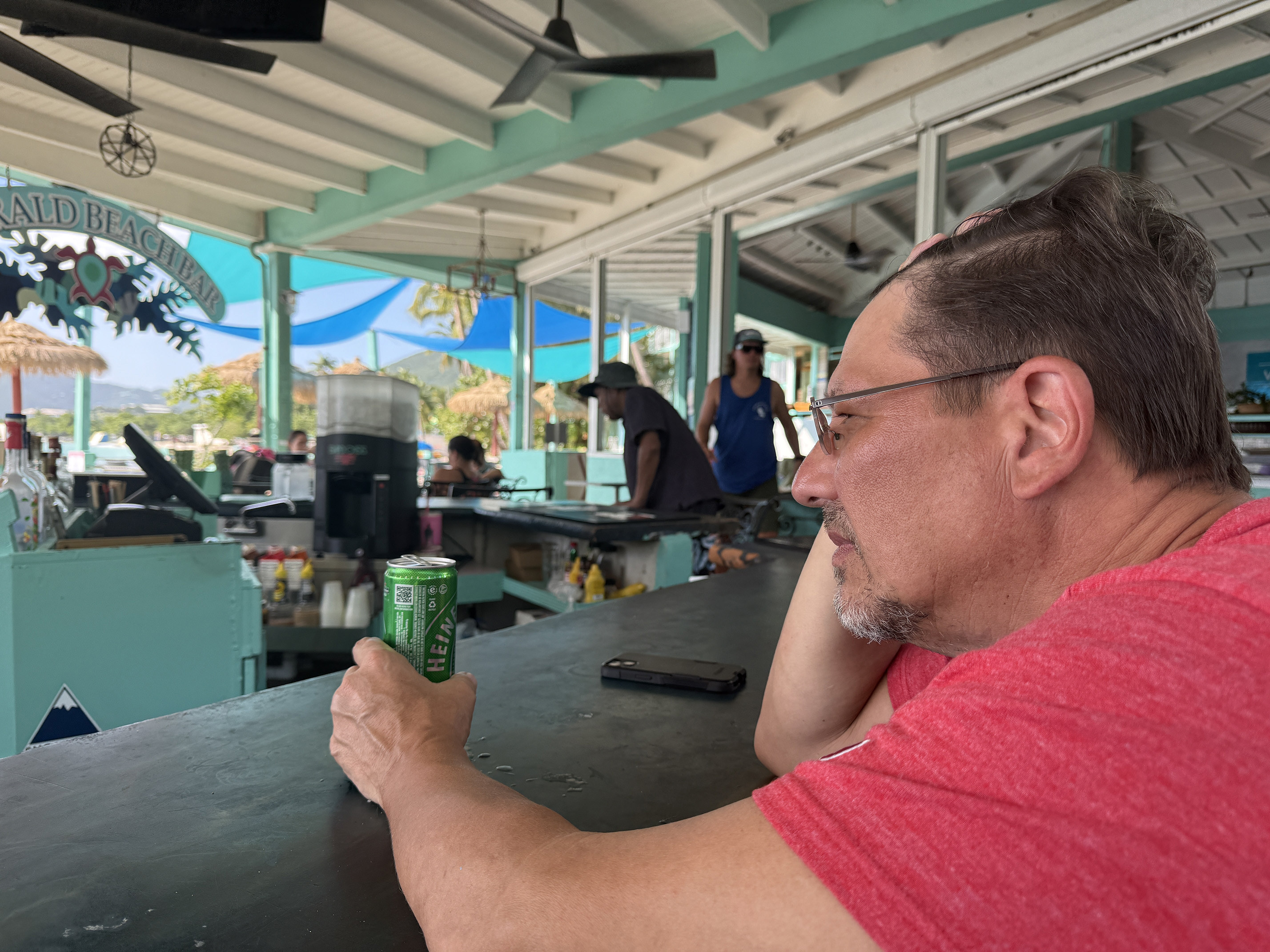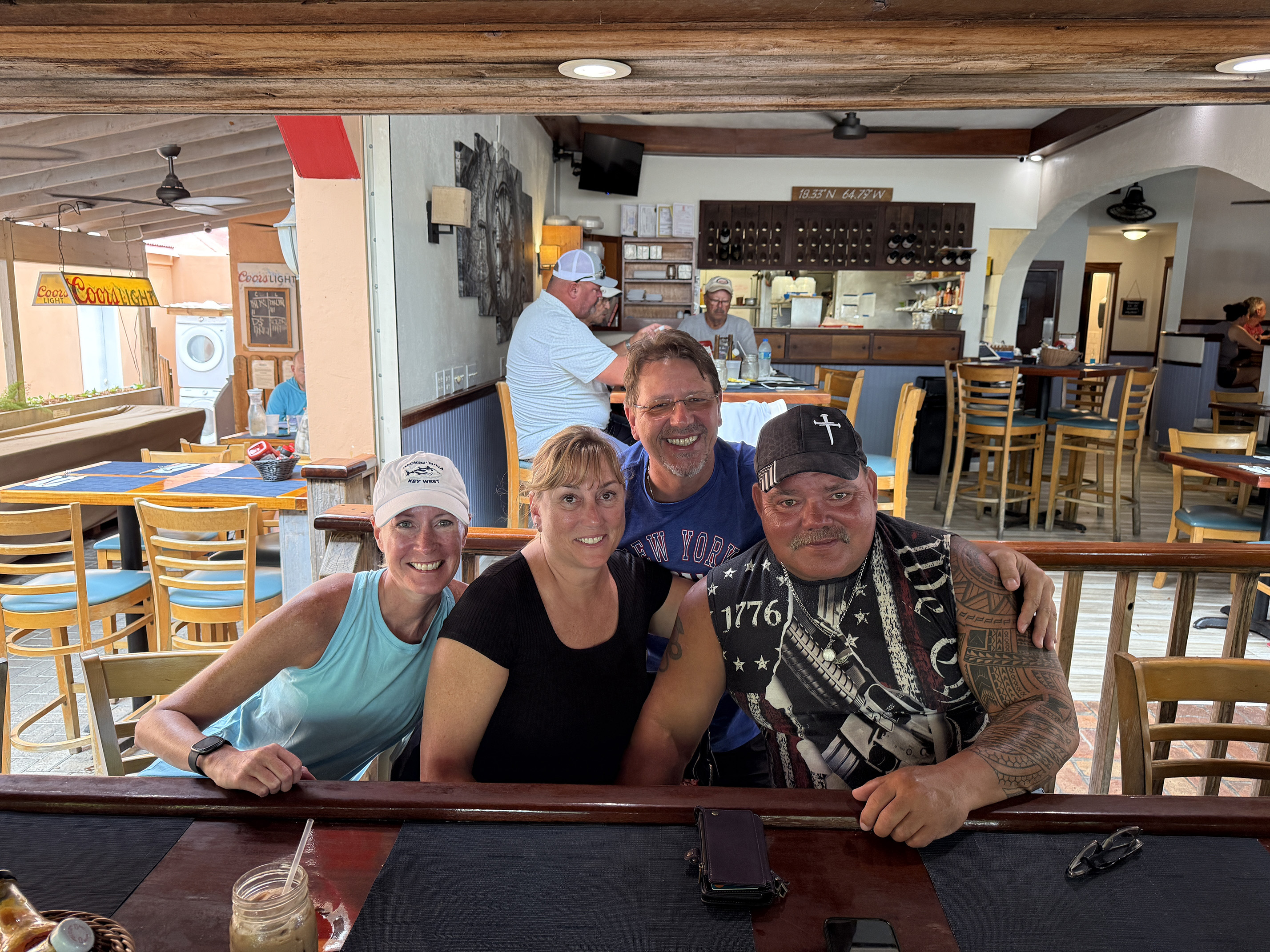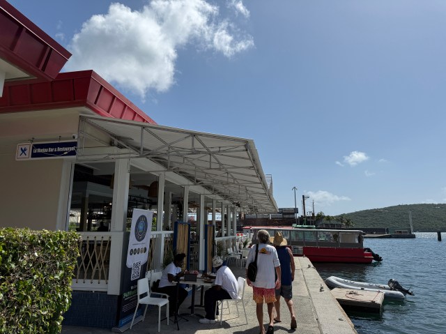 For the first time during our entire stay, we woke up to rain and overcast skies. Normally our last day when we leave St. John it is picture perfect. What a change I thought to myself. Since our flight wasn’t until 4:28PM that afternoon, we decided to enjoy some coffee while we packed up the last of our things. Then head into town around 10:30am assuming check out was 11:00am. Since our flight was later on, it made the most sense to take the 1:15pm ferry to Crown Bay. This way we could also check out the newly opened La Marina restaurant that replaced an old time favorite, Tickles. I went ahead and booked tickets for the ferry on my phone as did our friends.