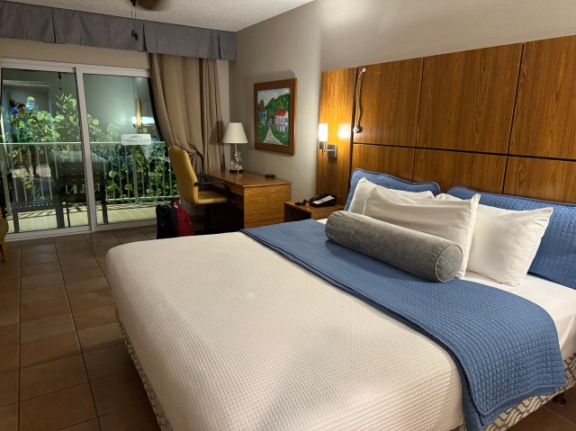 We quickly checked in and walked up to the 3rd floor to our room. Our friends were on the 2nd floor. We agreed to freshen up and meet back up at the hotel bar. We all needed a drink at that point. When I opened the door to our room, it was quite nice. I was pleasantly surprised. And it had a nice view from the balcony of the beach.