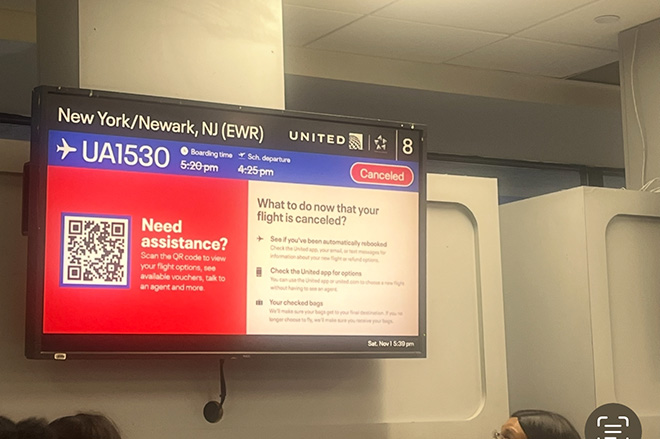 While we were getting ready to pay the bill, I looked at my phone one last time and I saw the message come through from United that our flight has been rebooked for the next day. However, it was even later then our original flight – 5:25pm and arriving into Newark at 8:58pm.