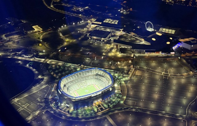The flight itself was uneventful. Soon I could see the lights of the city down below and I even spotted Metlife Stadium. (The NY Giants played earlier that day and lost again.)
