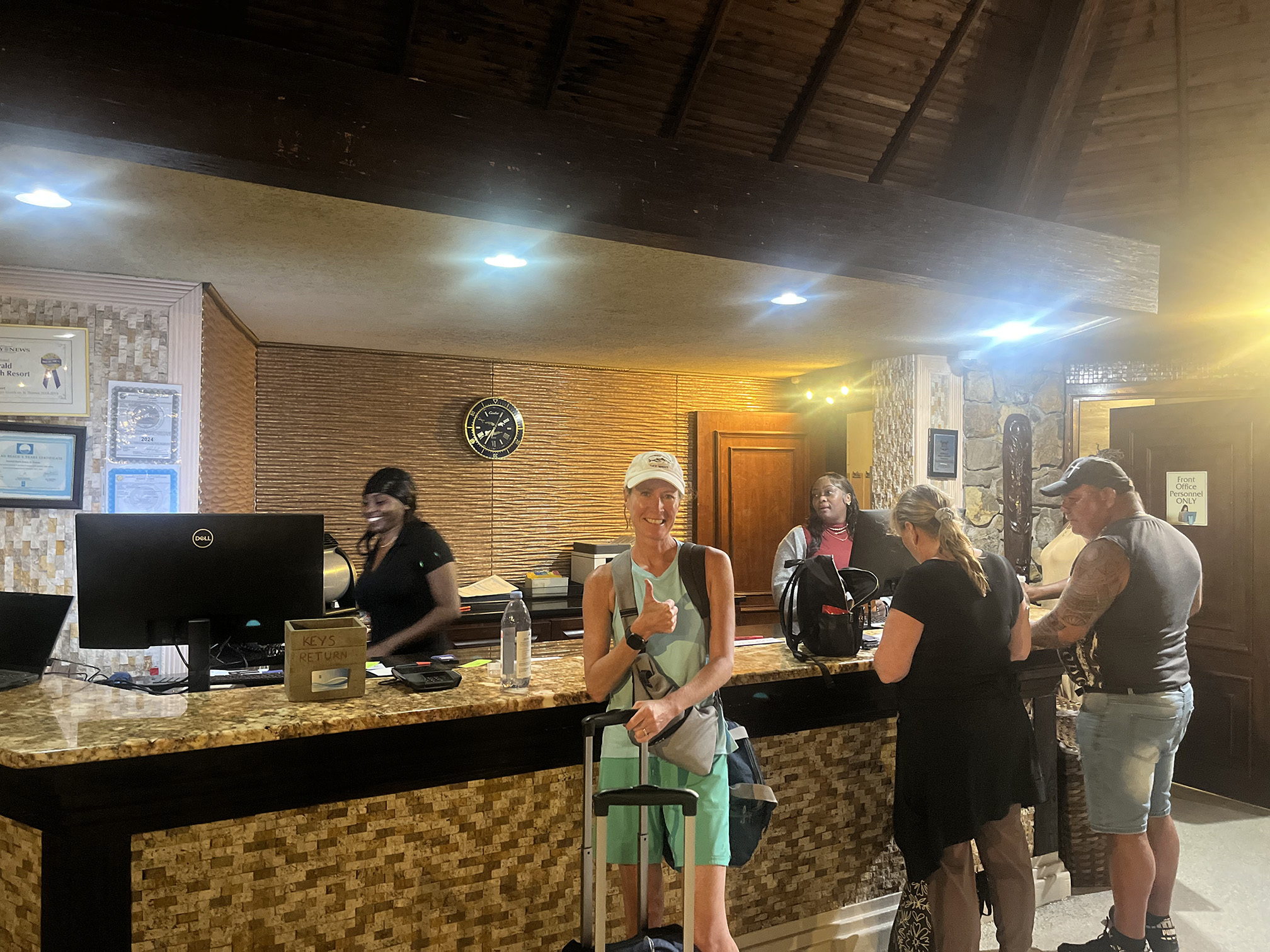 The next stop was the Emerald Beach Resort. It looked nicer then the previous stop. We gathered our things and there were two young ladies waiting to check us in. I guess they were given the heads up that they were getting a bunch of guests from our United Flight.