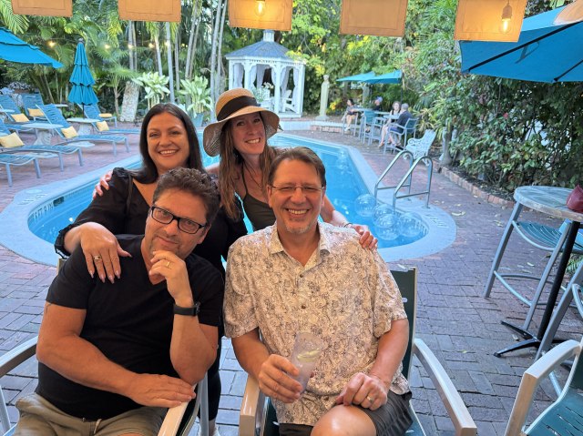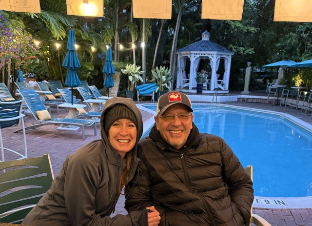 Then it was that time to make our way back to the Gardens. We paid our bill and walked back down Duval. It is always so strange to see people walking in Key West all bundled up in sweatshirts and whatnot. It isn’t right. When we made it back to the Gardens Brent and Julie were there at the Pool Bar all bundled up. I thought about stopping by Willie T’s to see Zack, but I just pictured ourselves sitting on those stools freezing. Maybe we could try the next day I thought.