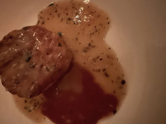 It smelled wonderful in there and I was starting to get really hungry. Once everyone was settled in their seats, the server stood in the middle of the dining room and announced the menu options for that evening. I felt like I was in the movie the Menu.
