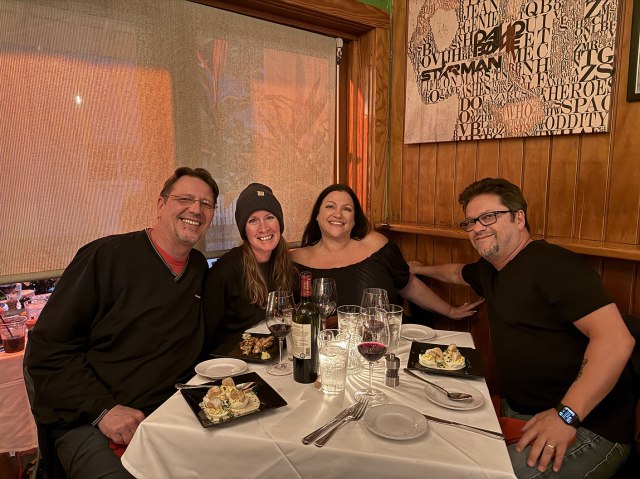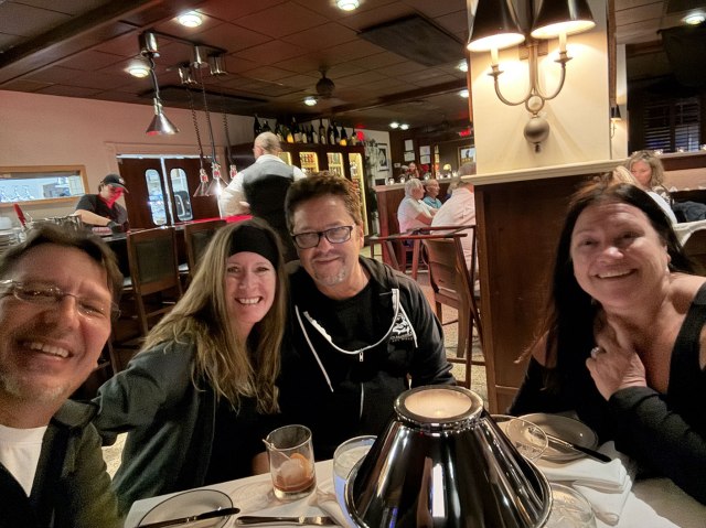 She said that our friends from Long Island, Lynn and Al felt bad that they couldn’t join us this trip but wanted to send something down to us. I thought it was so sweet that I went ahead and took a picture. Just as I was about to send it to Lynn thanking her, I turned around and there they were! They had it all planned to surprise my husband and I. Brent and Julie knew and so did the Gardens Hotel staff. It was so much fun to see them again.
