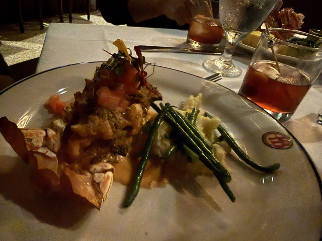 Our main course soon was served. The black grouper looked amazing and it was. The sherry wine sauce was so good, however when I tried the broccolini, there was nothing on them. Maybe one of the cooks forgot to toss them in olive oil? There wasn’t even any salt or pepper. It was like they were blanched in water and put on the plate. Again, the place was really busy so maybe it was just something that was overlooked. We have never had a bad meal there – ever. So with that I did still enjoy everything else.