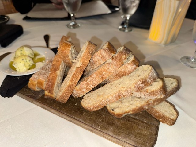 Everyone went ahead and poured themselves a glass of wine from the bottles that we brought. I think we had more then enough bottles of wine. Soon our amuse-bouche was brought out to us. I don’t think it has ever changed, but it is a tasty bite to start consisting of sauteed white beans, roasted tomato, mozzarella on a crostini.