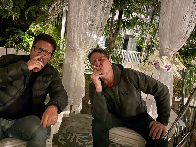 My husband had bought cigars earlier that day, to surprise Brent. So when we went to the gazebo for our last night cap of the trip, my husband busted out the cigars.