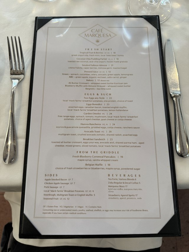 While we were waiting for our entrees, I thought about where we could have breakfast the next morning before we head out to the airport. Then I suggested Cafe Marquesa. Julie took a peak at the menu and thought that we should give it a try. So I went ahead and made us a reservation for the following morning at 9:30am.